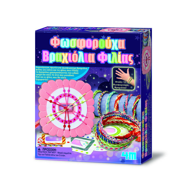 Δημιούργησε πρωτότυπα φωσφορούχα βραχιόλια φιλίας για εσένα και τις φίλες σου! Διάλεξε ανάμεσα από όμορφα χρώματα, αυτά που σου ταιριάζουν περισσότερο και δες τα βραχιόλια να φωσφορίζουν στο σκοτάδι. Μπορείς να φτιάξεις 12 φωσφορούχα βραχιόλια. Πλέξε τα βραχιόλια χρησιμοποιώντας τον ειδικό τροχό και κάνε το στυλ σου μοναδικό. Εσύ και οι φίλες σου θα είστε ξεχωριστές!