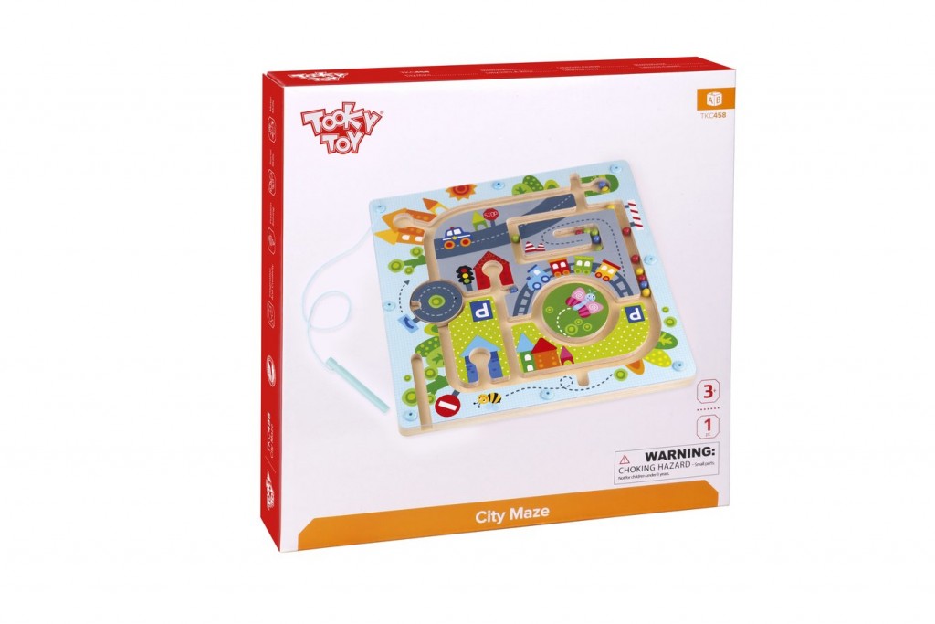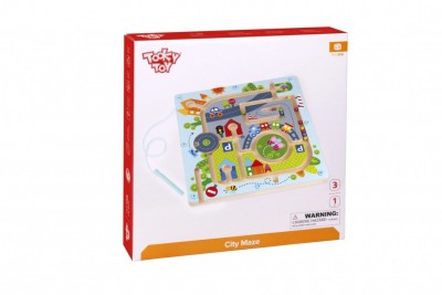 Μπορείς να κάνεις τον γύρο της πόλης; Ακολούθησε τον λαβύρινθο με το ξυλάκι και ολοκλήρωσε τη διαδρομή ξεπερνώντας τα εμπόδια. Ο ξύλινος λαβύρινθος βοηθάει στη βελτίωση των κινητικών ικανοτήτων και στο συντονισμό χεριού και ματιού.