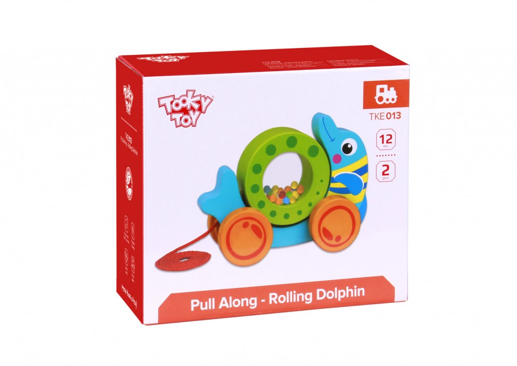 Με αυτό το ξύλινο δελφίνι το παιδί μπορεί να διασκεδάσει κάνοντας βόλτες με το συρόμενο ζωάκι, βελτιώνοντας με αυτόν τον τρόπο τον συντονισμό κινήσεων και αναπτύσσοντας τις κινητικές του δεξιότητες. Παράλληλα τα ζωηρά χρώματα των βόλων που κινούνται και ο ήχος που παράγουν, κεντρίζουν το ενδιαφέρον και οξύνουν την παρατηρητικότητά του. Με έντονα χρώματα, αποτελεί ένα αγαπημένο κλασικό συρόμενο παιχνίδι, κατάλληλο για παιδιά βρεφικής ηλικίας.
