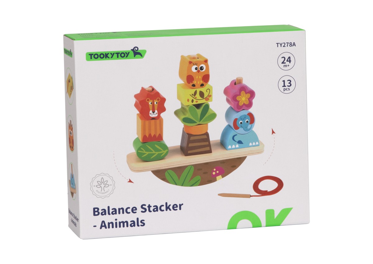 Ξύλινο παιχνίδι ισορροπίας με ζωάκια σε ποικιλία χρωμάτων τα οποία τοποθετεί το παιδί σε κυλινδρικά στηρίγματα, φτιάχνοντας συνθέσεις. Παιχνίδι που βελτιώνει τον συντονισμό χεριού-ματιού, τις λεπτές κινητικές δεξιότητες και την ισορροπία.