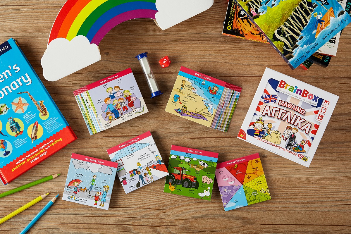 Αυτό το BrainBox θα βελτιώσει την παρατηρητικότητα και τις μνημονικές ικανότητες των παιδιών, ενώ παράλληλα θα αναπτύξει το λεξιλόγιό τους στα Αγγλικά. Κάθε κάρτα δείχνει μία εικόνα με λέξεις στα Αγγλικά και τα Ελληνικά. Το πίσω μέρος της κάρτας έχει δύο επίπεδα ερωτήσεων, ένα για αρχάριους και ένα για όσους έχουν μεγαλύτερη αυτοπεποίθηση.