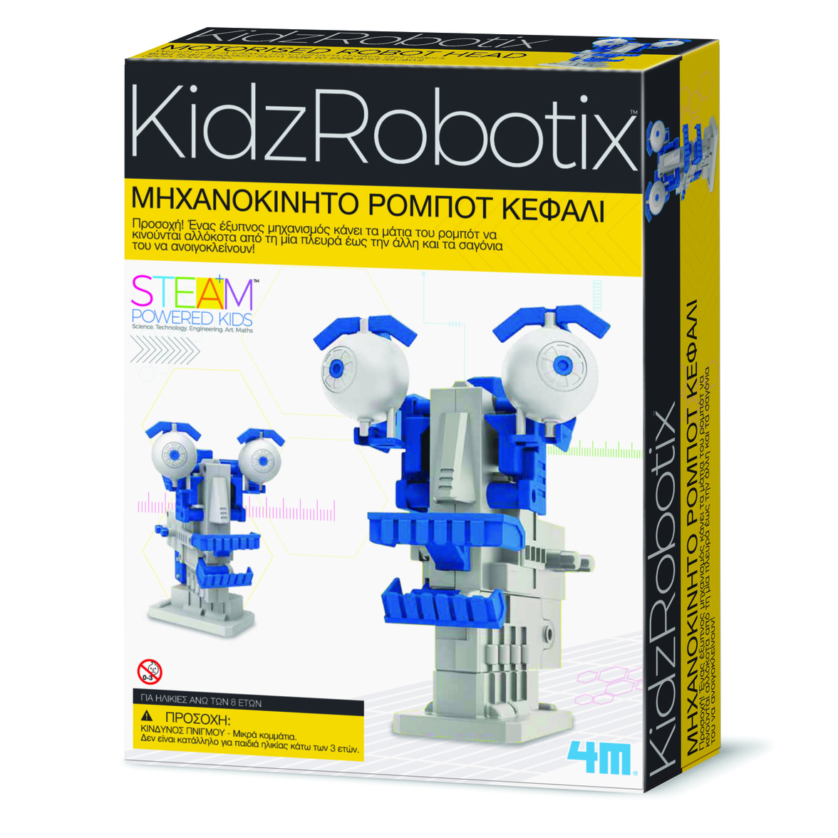 Αυτό το κεφάλι ρομπότ είναι ένας έξυπνος μηχανισμός! Δες το να κινεί παράξενα τα μάτια του και να ανοιγοκλείνει τα σαγόνια του! Διάβασε τα ψυχαγωγικά στοιχεία που περιλαμβάνονται στις οδηγίες και μάθε ενδιαφέρουσες πληροφορίες για τα ρομπότ.