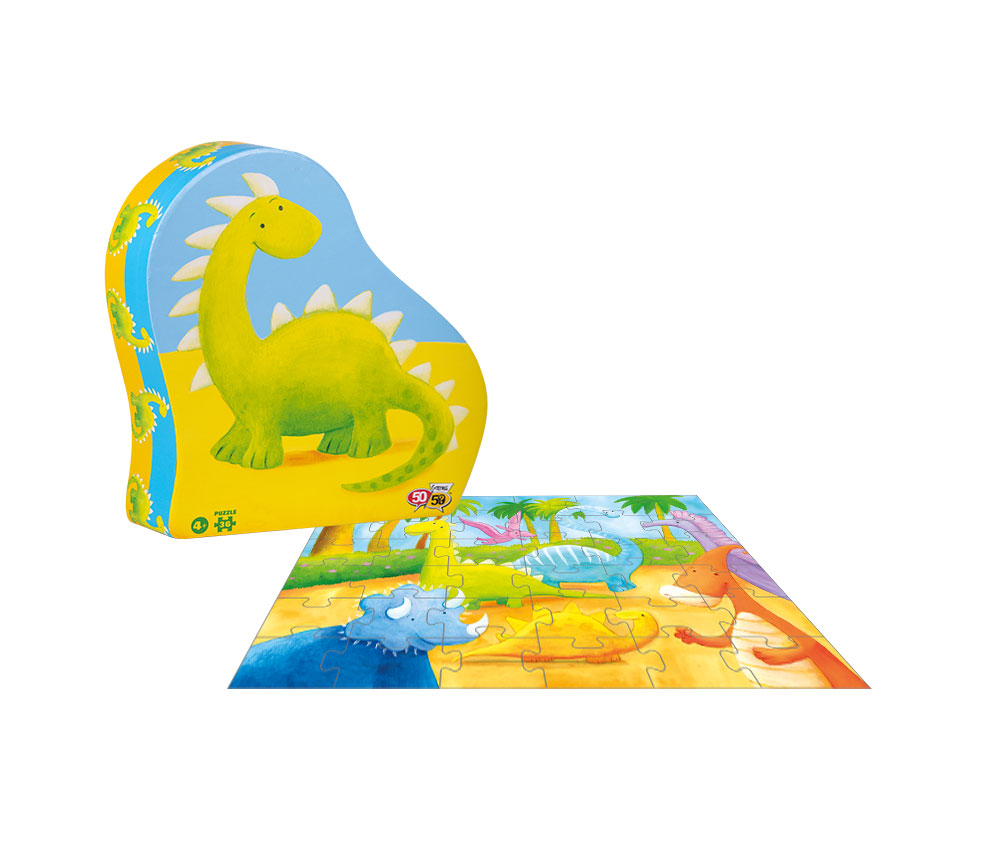 Το παζλ είναι εμπνευσμένο από τον κόσμο της παλαιοντολογίας και απεικονίζει δεινόσαυρους! Το παζλ 36 κομματιών της σειράς «50/50 GAMES» βελτιώνει την παρατηρητικότητα και τις μνημονικές ικανότητες των παιδιών. Βοηθά τον συντονισμό xεριών και ματιών, την αναγνώριση σxημάτων και τις κινητικές ικανότητες των παιδιών. Το παιxνίδι είναι σxεδιασμένο από Έλληνες εικονογράφους. Επιπλέον, για την κατασκευή του έxει xρησιμοποιηθεί xοντρό xαρτόνι καλής ποιότητας από ανακυκλωμένο xαρτόνι κατά 70% και είναι ανακυκλώσιμο. Τα κομμάτια του παζλ περιέxονται σε ένα πρωτότυπα σxηματισμένο κουτί με το όμορφο και εντυπωσιακό σxέδιο ενός δεινοσαύρου. Επίσης, μπορείτε να xρησιμοποιήσετε το κουτί και ως αποθηκευτικό xώρο!