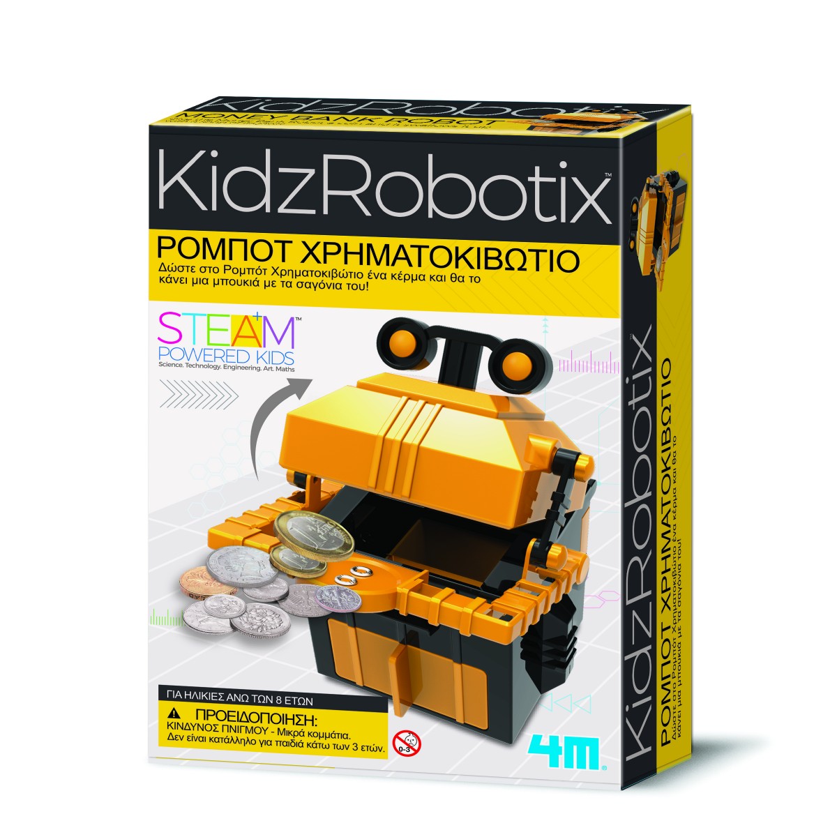 Δώσε στο ρομπότ ένα κέρμα και θα δεις να το καταπίνει στη στιγμή με το σαγόνι του! Τοποθέτησε ένα κέρμα στον βραχίονα κερμάτων και δες το να εξαφανίζεται. Μπορείς να πάρεις πίσω το κέρμα σου, ανοίγοντας το συρτάρι στο κάτω μέρος του ρομπότ. Διάβασε τα ψυχαγωγικά στοιχεία που περιλαμβάνονται στις οδηγίες και μάθε νέες πληροφορίες για τους κουμπαράδες και τις μηχανικές τράπεζες.