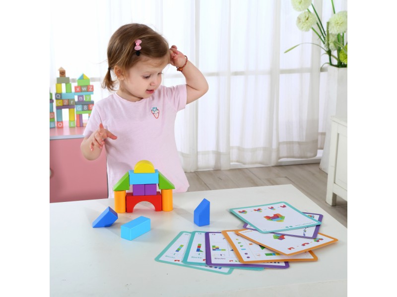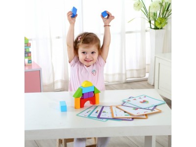 Αυτό το ξύλινο σετ αποτελείται από πολλά διαφορετικά τουβλάκια με διαφορετικά χρώματα και μεγέθη. Παρέχει τη δυνατότητα στο παιδί να κατασκευάσει όμορφους πύργους με τη βοήθεια ειδικών καρτών σε διάφορα μοτίβα και να εξασκήσει τις κινητικές του δεξιότητες και την ικανότητα της αντίληψης. Το παιχνίδι αποτελείται από 33 τεμάχια.