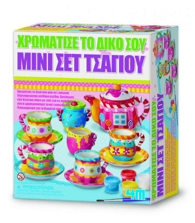 Διακόσμησε το δικό σου σετ τσαγιού! Περιέχει ένα πλήρες σετ με μινιατούρες και χρώματα για να το ζωγραφίσεις με το δικό σου μοναδικό στυλ. Ζωγράφισέ το με χρώματα της επιλογής σου ή συμβουλέψου τις οδηγίες για να ανακαλύψεις παραπάνω χρωματικούς συνδυασμούς.