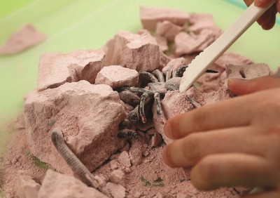 Σκάψε προσεκτικά τον γύψο χρησιμοποιώντας τα ειδικά εργαλεία ανασκαφής και ξέθαψε τα ανατριχιαστικά ζωύφια! Ανακάλυψε τα μυστικά τους και μάθε ενδιαφέρουσες πληροφορίες γι' αυτά τοποθετώντας τα στις ειδικές κάρτες δειγμάτων που παρέχονται.