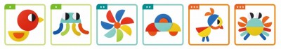 Αυτό το παζλ αποτελείται από 20 κάρτες διπλής όψης με 40 διαφορετικές εικόνες διαβαθμισμένης δυσκολίας (3 επίπεδα) και 35 πολύχρωμα και διαφορετικά σχήματα.