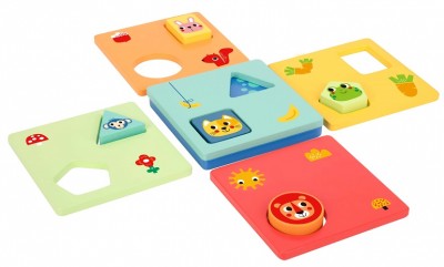 Πρόκειται για ένα εκπαιδευτικό παιχνίδι της κατηγορίας STEAM που καλλιεργεί τις μαθηματικές, κινητικές και αντιληπτικές δεξιότητες του παιδιού. Το παιχνίδι αποτελείται από 6 διαφορετικές και πολύχρωμες ξύλινες πλάκες-παζλ με όμορφα χρώματα και ζωγραφιές που θα κεντρίσουν την οπτική και το ενδιαφέρον των μικρών παικτών. Επίσης, αποτελείται 5 διαφορετικά γεωμετρικά σχήματα (τετράγωνο, παραλληλόγραμμο, πεντάγωνο, κύκλος και τρίγωνο) με ζωγραφισμένα ζωάκια που είναι γνώριμα στα παιδιά.