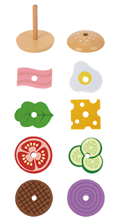 Το παιχνίδι αποτελείται από 15 τεμάχια. Πιο συγκεκριμένα, αποτελείται από 9 διαφορετικά υλικά (ψωμάκι, τυρί, μπιφτέκι, αυγό, κρεμμύδι, ντομάτα, μπέικον, αγγούρι και μαρούλι) για την παρασκευή ενός λαχταριστού μπέργκερ και 10 κάρτες με διαφορετικά μενού. Ο παίκτης επιλέγει μία κάρτα και ξεκινάει να φτιάχνει το μπέργκερ με βάση τα υλικά που αναγράφονται στην κάρτα.