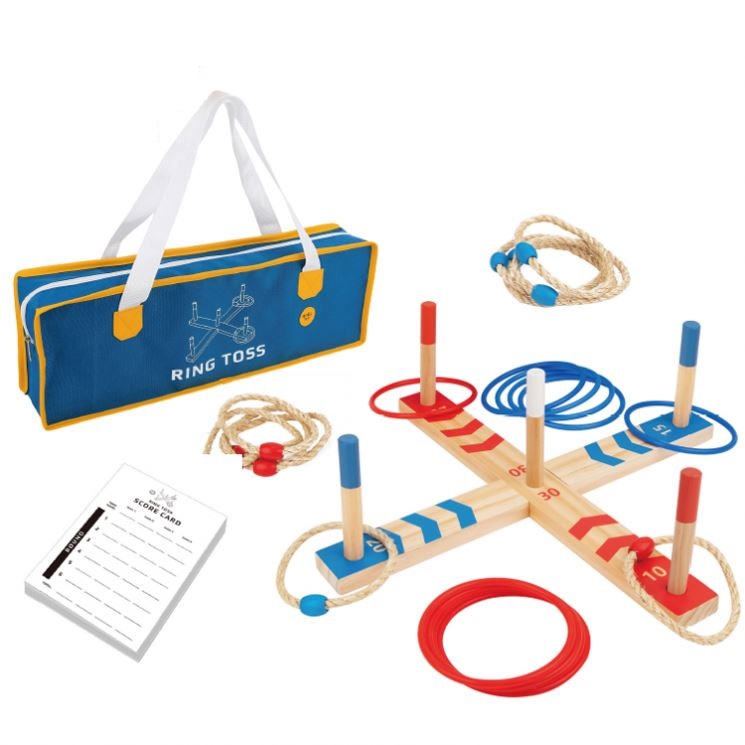 Το ξύλινο παιχνίδι με κρίκους αποτελείται από 20 κρίκους κατασκευασμένους με σχοινί και πλαστικό, μία τσάντα μεταφοράς και αποθήκευσης, 100 κάρτες για τη βαθμολογία, δύο ξύλα και πέντε πασαλάκια που ενώνονται σε σχήμα σταυρού για να σχηματίσουν τη βάση του παιχνιδιού.