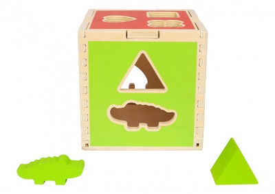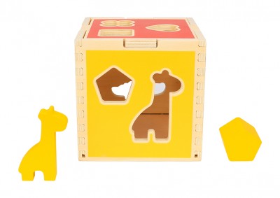 Ο Ξύλινος Κύβος βοηθάει το παιδί να μάθει τα χρώματα, τα σχήματα και τα ζωάκια. Αναπτύσσει την κριτική και λογική ικανότητά του, καθώς κάθε σφήνωμα αντιστοιχεί μόνο σε ένα άνοιγμα. Επίσης, το παιδί αποκτά καλύτερο έλεγχο των κινήσεών του και αναπτύσσει την παρατηρητικότητα του. Τα έντονα χρώματα στον κύβο, τα σχήματα και τα ζωάκια, έλκουν την προσοχή του παιδιού και διατηρούν το ενδιαφέρον του για ώρα.