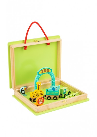 To Ξύλινο Τρενάκι Ζωολογικός Κήπος είναι ένα πρωτότυπο διαδραστικό παιχνίδι εμπνευσμένο από την καθημερινή ζωή της πόλης και του ζωολογικού κήπου.