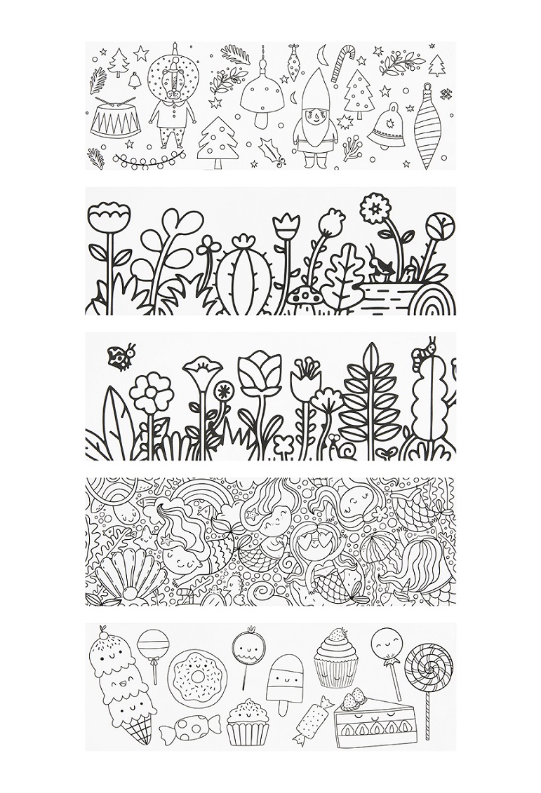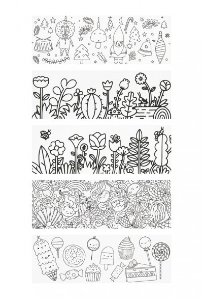 Στη συσκευασία περιέχονται επίσης 5 φύλλα με σχέδια έτοιμα για ζωγραφική.