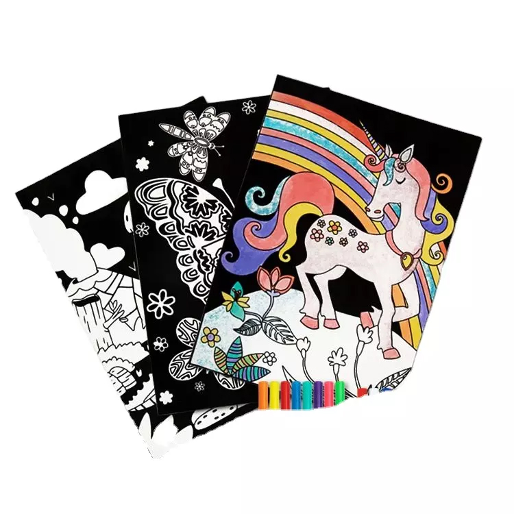 Το σετ Ζωγραφική σε Βελούδο Μονόκερος αποτελείται από μία εικόνα με βελούδο, 8 μαρκαδόρους και 8 κόλλες με χρωματιστό γκλίτερ.