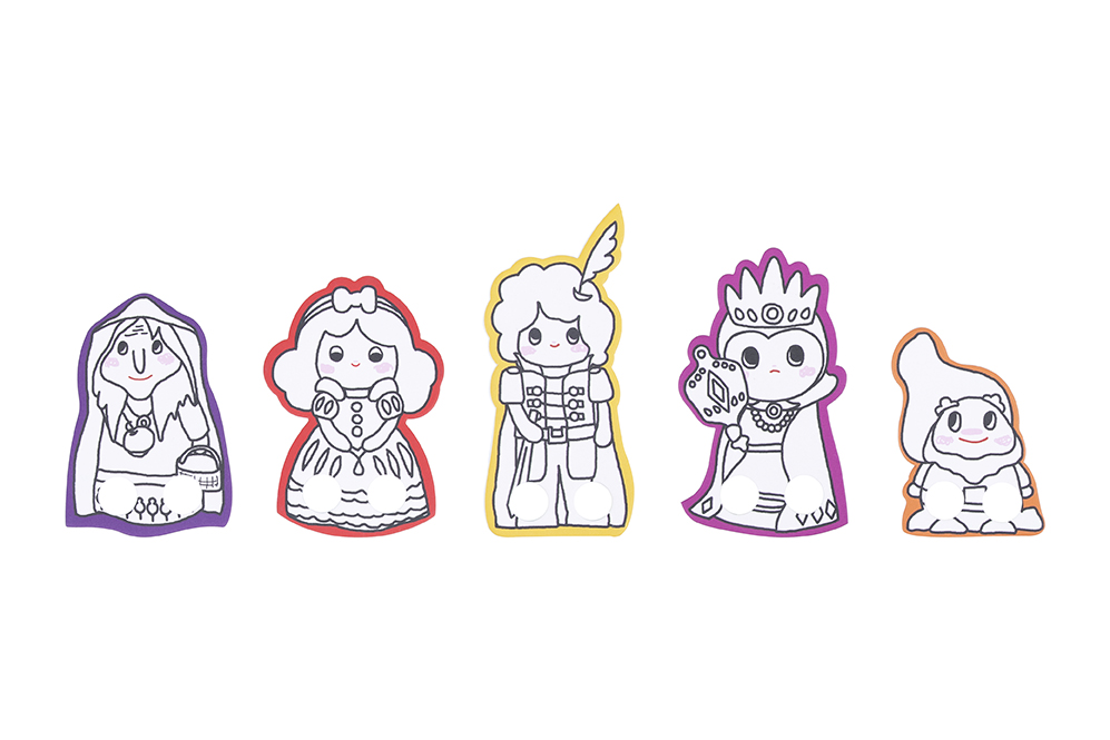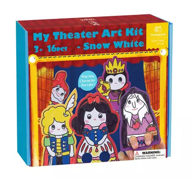 Το σετ θεάτρου Χιονάτη περιλαμβάνει το σκηνικό, μαζί με δέκα χάρτινες φιγούρες με τους χαρακτήρων του παραμυθιού. Κάθε φιγούρα περιλαμβάνει εσοχές τοποθέτησης δαχτύλων. Είναι κατάλληλο για παιδιά άνω των 3 ετών. Το σετ θεάτρου Χιονάτη βοηθά στη δημιουργική και ευχάριστη απασχόληση του παιδιού, καθώς και στην ανάπτυξη της κοινωνικότητάς του, μέσω του ομαδικού παιχνιδιού.