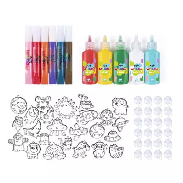Το σετ ζωγραφικής & διακόσμησης παραθύρου ζώα του κόσμου αποτελείται από φιγούρες με τη μορφή ζώων για χρωματισμό. Είναι κατάλληλο για παιδιά άνω των 6 ετών. Οι φιγούρες μπορούν να τοποθετηθούν ως διακόσμηση σε γυαλί ή τοίχο. Το σετ ζωγραφικής & διακόσμησης παραθύρου αποτελεί μια ευχάριστη δραστηριότητα, μέσω της οποίας το παιδί μπορεί να αξιοποιήσει τη φαντασία του και τη δημιουργικότητά του.