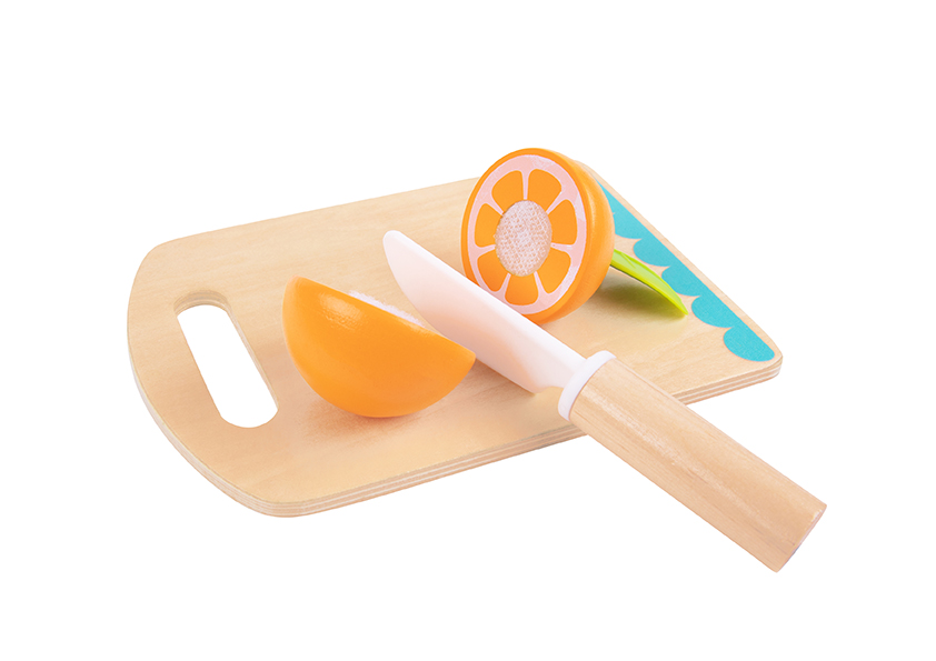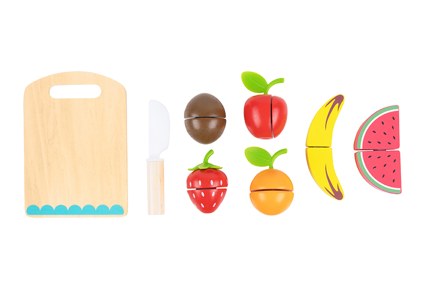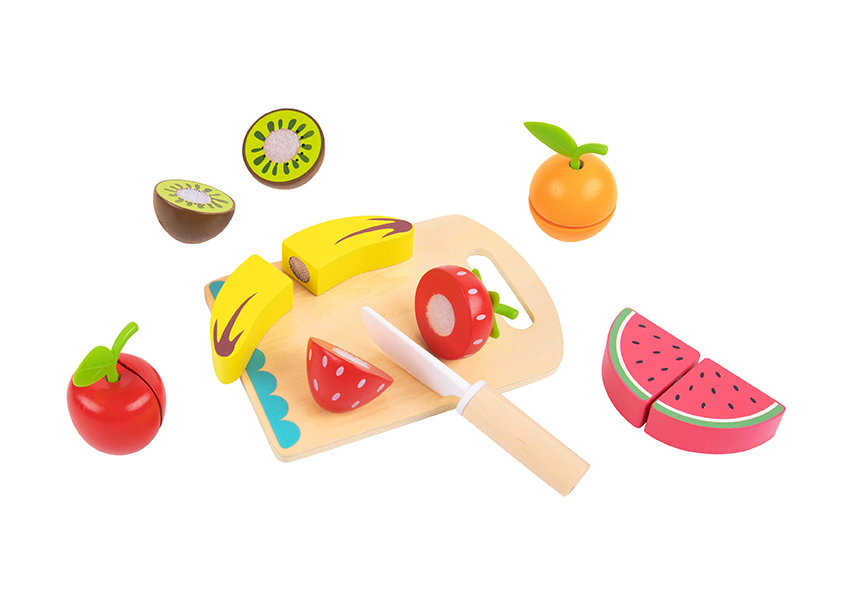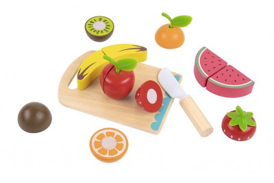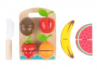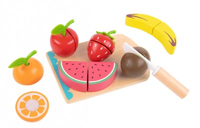 Τα ξύλινα φρούτα με ξύλο κοπής θα ταξιδέψει τους μικρούς μας φίλους στον κόσμο της μαγειρικής. Το παιχνίδι αποτελείται από ένα ξύλινο πάγκο κοπής, ένα ξύλινο, μικρό μαχαίρι και διάφορα ξύλινα φρουτάκια. Απευθύνεται σε παιδιά άνω των 3 ετών και τηρεί όλα τα απαραίτητα πρότυπα ασφαλείας. Είναι φτιαγμένο από ζωηρά χρώματα, έτσι ώστε να τραβάει την προσοχή του παιδιού, συμβάλλοντας στην ανάπτυξη της οπτικής του ικανότητας. Μέσα από παιχνίδι ρόλων, το παιδί έχει τη δυνατότητα να αναπτύξει τις κινητικές του δεξιότητες, την κοινωνικότητά του, να μάθει να προστατεύεται από αιχμηρά αντικείμενα και να εκπαιδευτεί πάνω στην υγιεινή διατροφή.
