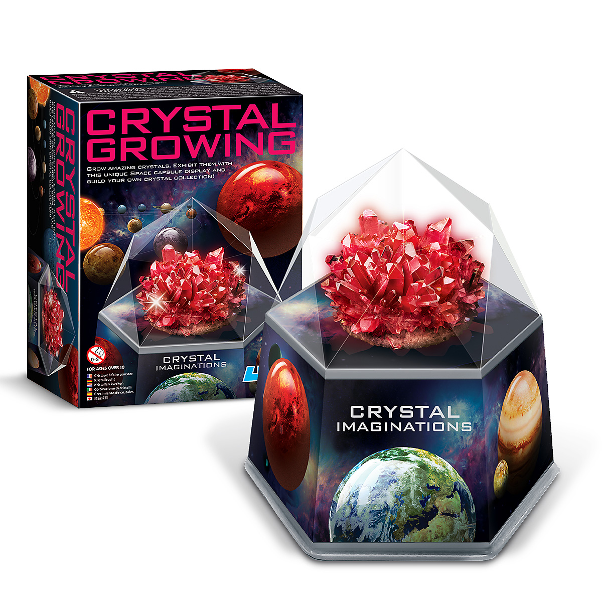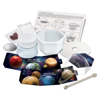 ΠΕΡΙΕΧΟΜΕΝΑ: σακούλα με λευκή χημική κρυσταλλική ένωση x1, σακούλα που περιέχει χρωστική ουσία x1, βάση κρυστάλλων x1, στρογγυλό χάρτινο κάλυμμα x1, χρωματιστό εξώφυλλο x1, κουτάλι ανάδευσης x1, κάλυμμα εκθεμάτων x1, δοχείο ανάδευσης/διαφανής βάση εκθεμάτων x1.