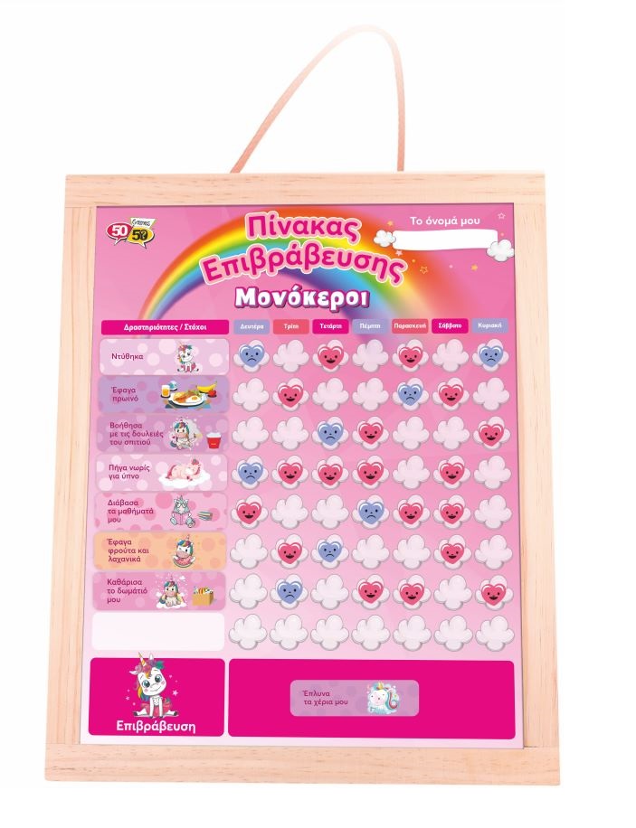 Ο πιο εύκολος και διασκεδαστικός τρόπος για να γίνεις συνεπής! Ένα ειδικά σχεδιασμένο εκπαιδευτικό μέσο ενθάρρυνσης που επιφέρει θετικά αποτελέσματα στις συνήθειες και τη συμπεριφορά του παιδιού. Εφαρμόζοντας το μοτίβο του στόχου-επιβράβευσης, το παιδί γίνεται υπεύθυνο και συνεπές στις υποχρεώσεις του και δομώντας το δικό του πρόγραμμα μαθαίνει την έννοια της υπομονής. Παράλληλα αποκτά αίσθημα αυτοεκτίμησης και κανόνες καλής συμπεριφοράς μέσω της επανάληψης. Με αυτόν τον τρόπο, διδάσκονται με αποτελεσματικό και διασκεδαστικό τρόπο θετικές συνήθειες και παράλληλα διορθώνονται τυχόν κακές που έχουν εδραιωθεί.