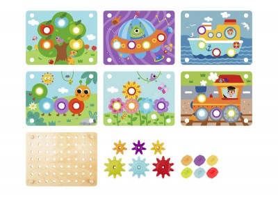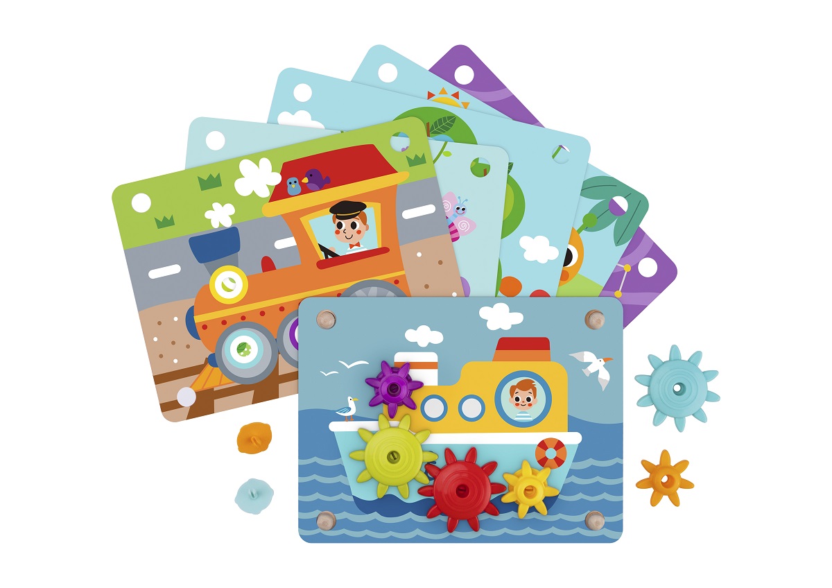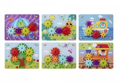 Το ξύλινο παιχνίδι λογικής με γρανάζια είναι ένα εκπαιδευτικό παιχνίδι για παιδιά άνω των 18 μηνών. Το παιχνίδι περιλαμβάνει 6 διαφορετικές εικόνες με πολύχρωμα σχέδια και υποδοχές για γρανάζια, καθώς και 6 γρανάζια δυο μεγεθών. Στόχος του παιχνιδιού είναι το παιδί να τοποθετήσει τα πολύχρωμα γρανάζια στις αντίστοιχες υποδοχές των εικόνων με τέτοιον τρόπο, ώστε η περιστροφή του ενός να προκαλέσει την περιστροφή και όλων των υπολοίπων. Το ξύλινο παιχνίδι λογικής με γρανάζια βοηθά στην ανάπτυξη των λεπτών κινητικών ικανοτήτων, της κριτικής ικανότητας, καθώς και στον συντονισμό ματιών-χεριού.