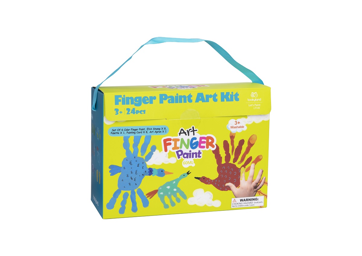 Δαχτυλομπογιές σε σετ. Κατάλληλες για ηλικίες άνω των 3 ετών. Είναι μη τοξικές και αφαιρούνται εύκολα από το δέρμα και τις επιφάνειες. Έχουν απαλή υφή και είναι κατάλληλες για χρήση σε πρόσωπο και σώμα κάτω από την επίβλεψη ενήλικα.