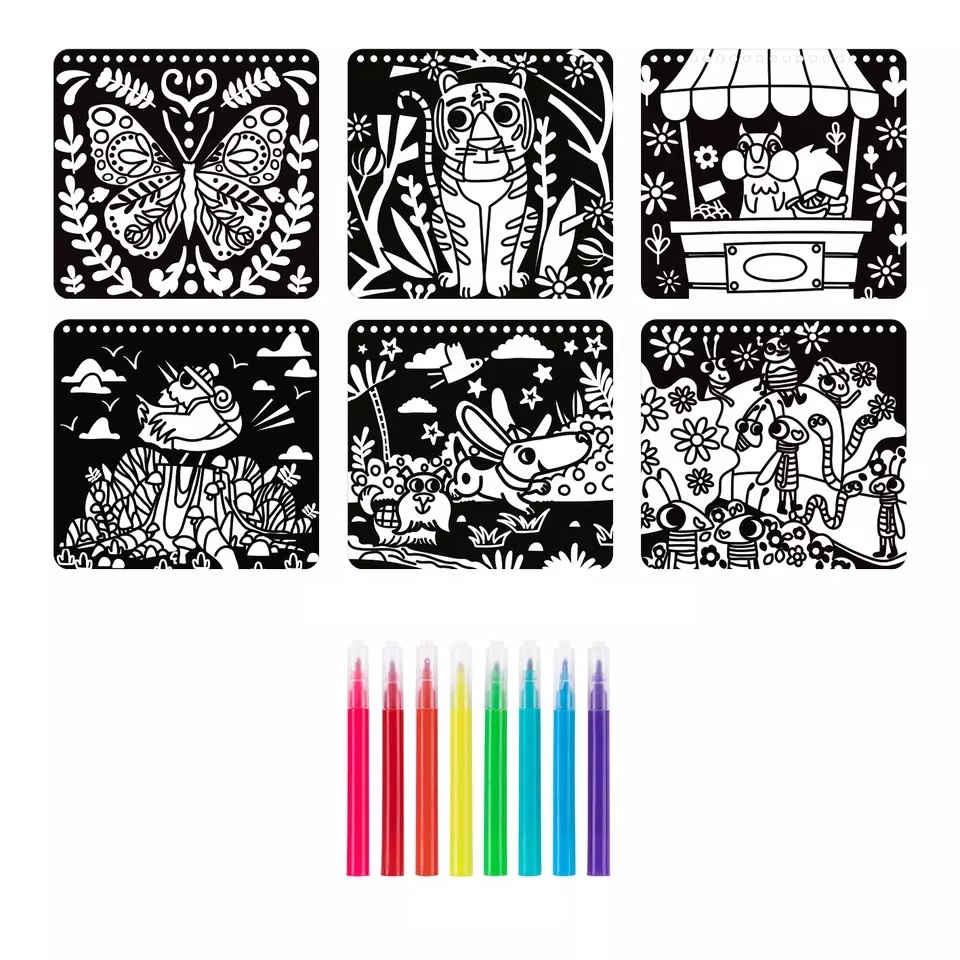Το σετ ζωγραφικής σε βελούδο ζώα θα ενθουσιάσει τους μικρούς μας καλλιτέχνες. Περιλαμβάνει 6 σελίδες για χρωματισμό με ζωάκια και 8 μαρκαδόρους σε διαφορετικά χρώματα. Οι σελίδες του σετ διαθέτουν τρύπες στο πάνω μέρος τους, ώστε να μπορούν να κοπούν εύκολα. Έχουν βελούδινη υφή και όταν χρωματιστούν αποκαλύπτονται σχέδια ως δια μαγείας. Το σετ ζωγραφικής διαθέτει λαβή στο πάνω μέρος, έτσι ώστε να είναι εύκολο στη μεταφορά. Κατάλληλο για ηλικίες άνω των 3 ετών.
