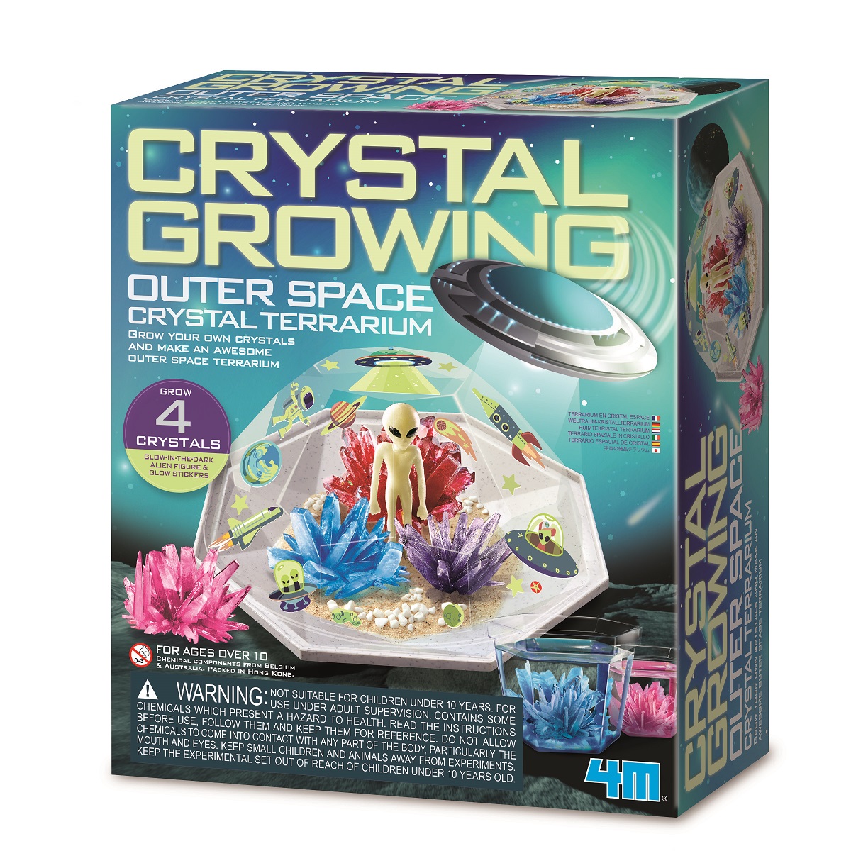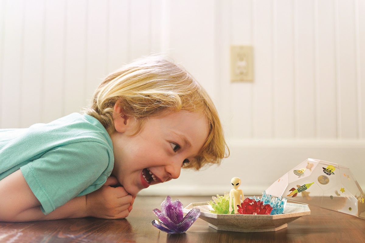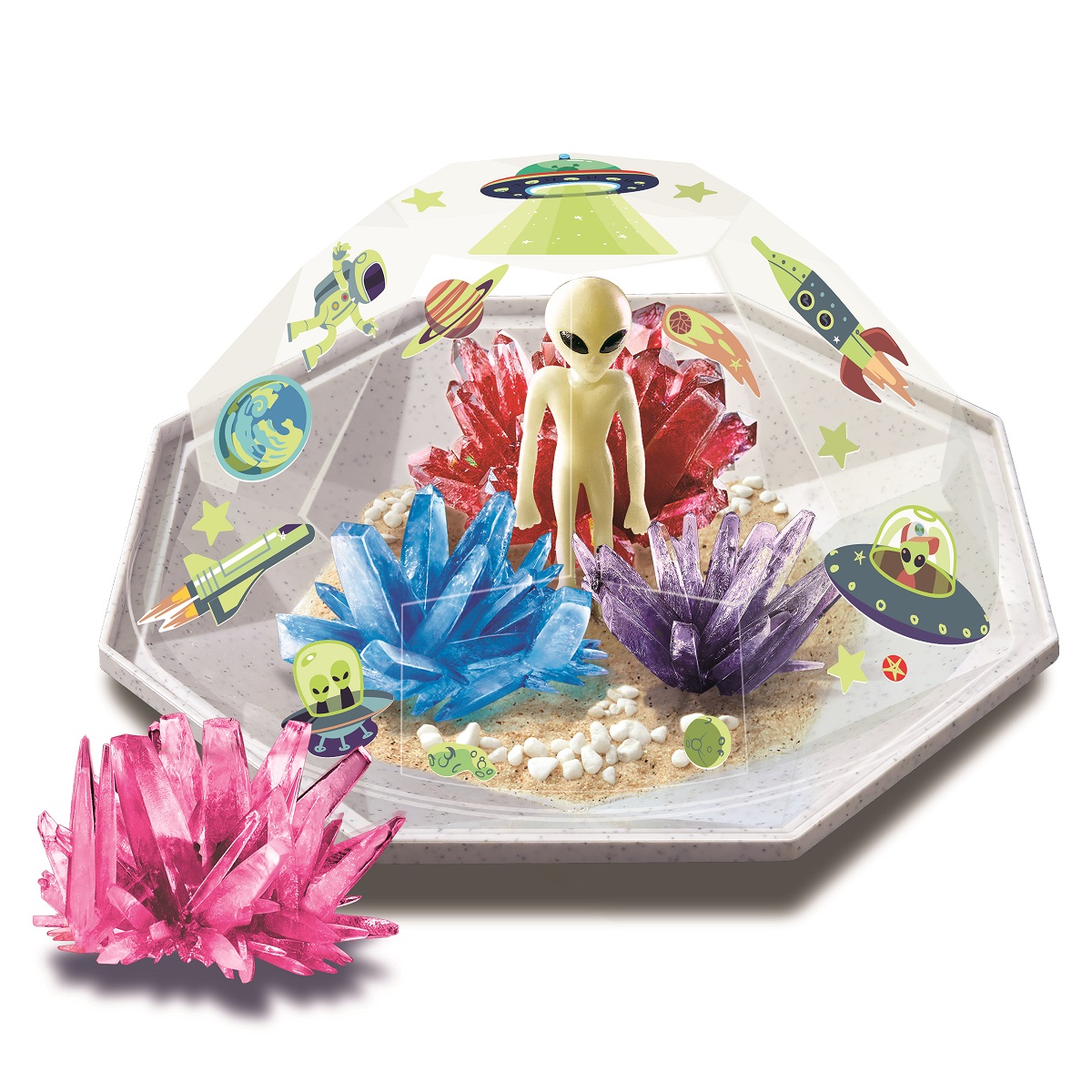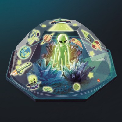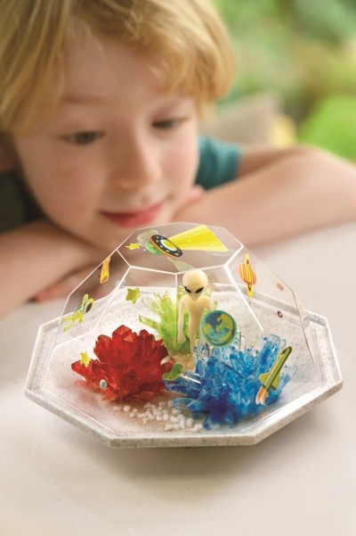 Μάθε πώς μπορείς να καλλιεργήσεις εντυπωσιακούς κρυστάλλους στο σπίτι σου! Μπορείς να φτιάξεις τη δική σου πολύτιμη συλλογή με αληθινούς κρυστάλλους και να τη διακοσμήσεις με διαστημικά αυτοκόλλητα και φιγούρα εξωγήινου που φωσφορίζουν στο σκοτάδι. Κατάπληξε τους φίλους και την οικογένειά σου με το αποτέλεσμα!