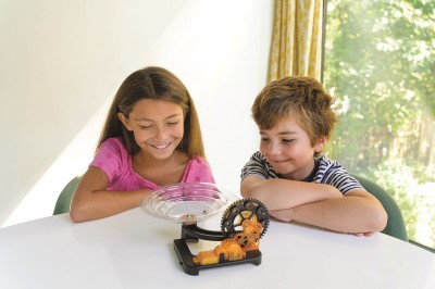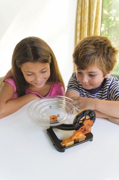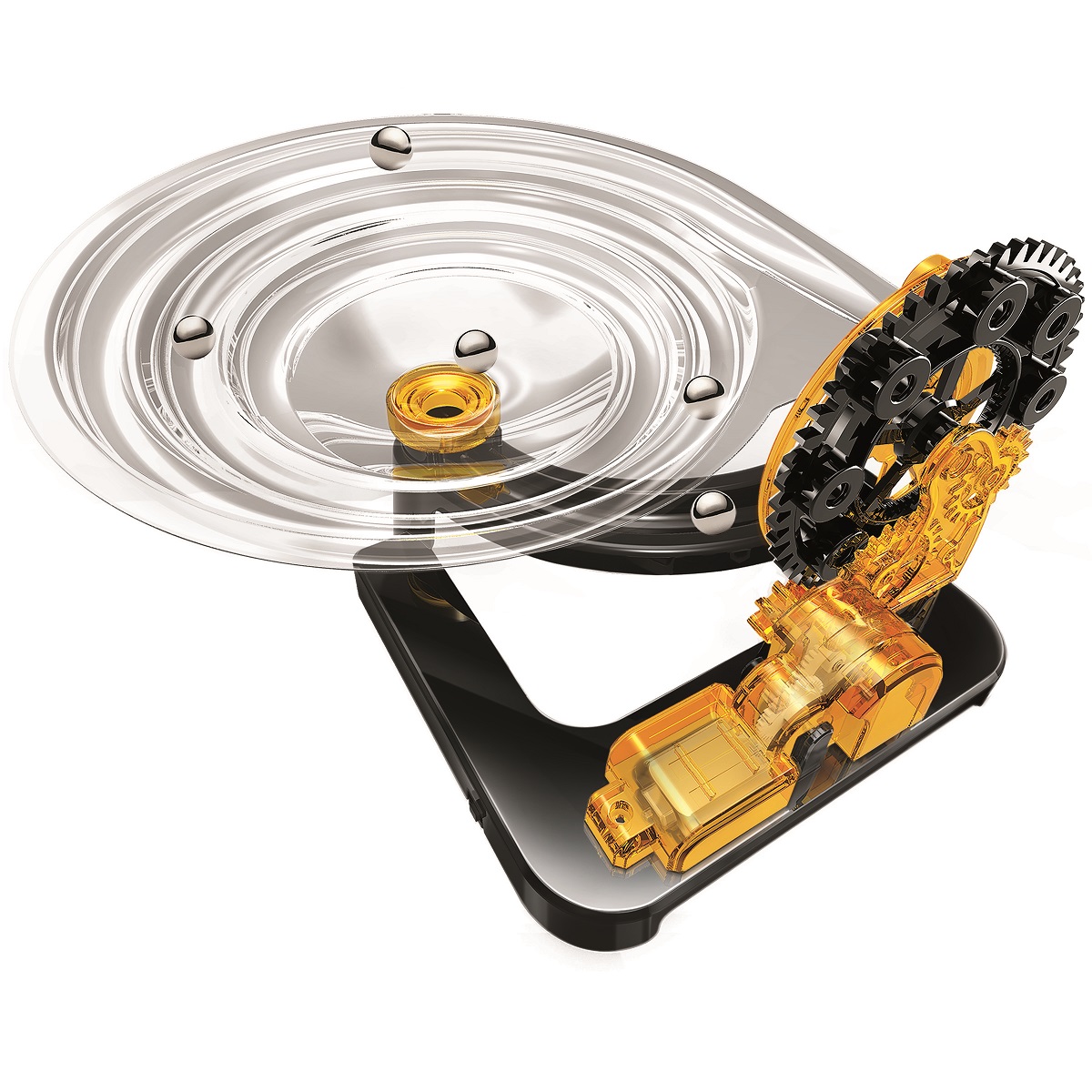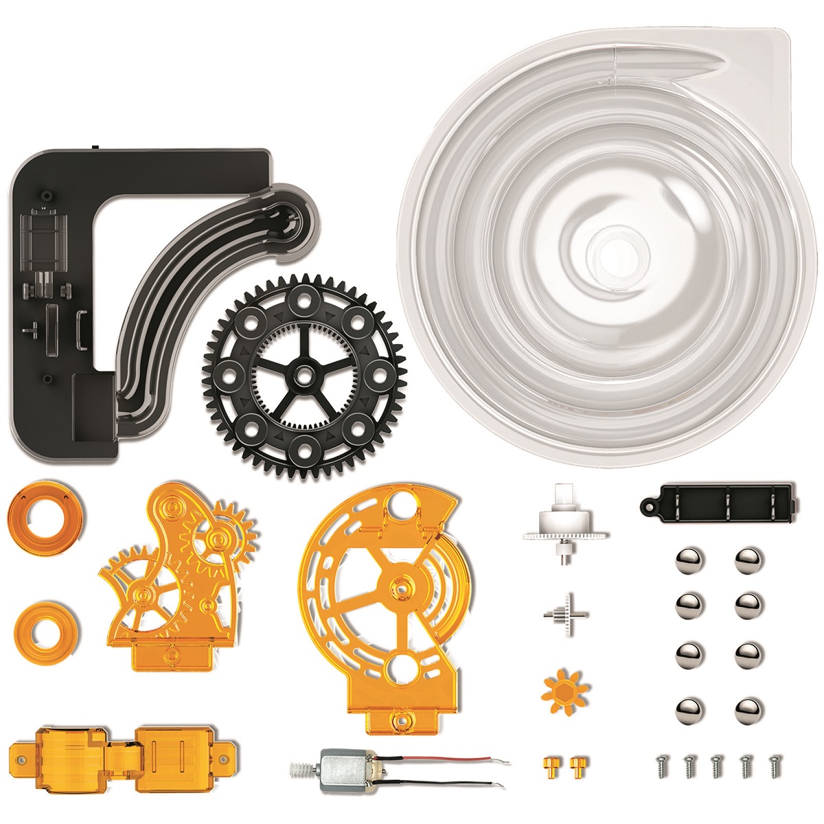 ΤΡΟΠΟΣ ΛΕΙΤΟΥΡΓΙΑΣ: Η μπαταρία τροφοδοτεί τον μηχανισμό, ο οποίος γυρίζει τον ατέρμονα κοχλία στον άξονα του. Αυτό γυρίζει το μικρό γρανάζι αργά, το οποίο με τη σειρά του γυρίζει το μεγάλο γρανάζι. Το μεγάλο γρανάζι γυρίζει το κινητήριο γρανάζι το οποίο θέτει σε λειτουργία τον περιστρεφόμενο τροχό. Όταν μια θέση στον τροχό περνάει από το κάτω μέρος της πίστας, ο βόλος πέφτει μέσα σε αυτήν. Όταν ο βόλος φτάσει στην κορυφή μπορεί να πέσει και να μπει στην σπειροειδή πίστα. Η βαρύτητα κάνει τον βόλο να περιστρέφεται στην σπειροειδή πίστα μέχρι να φτάσει στην τρύπα στο κάτω μέρος.