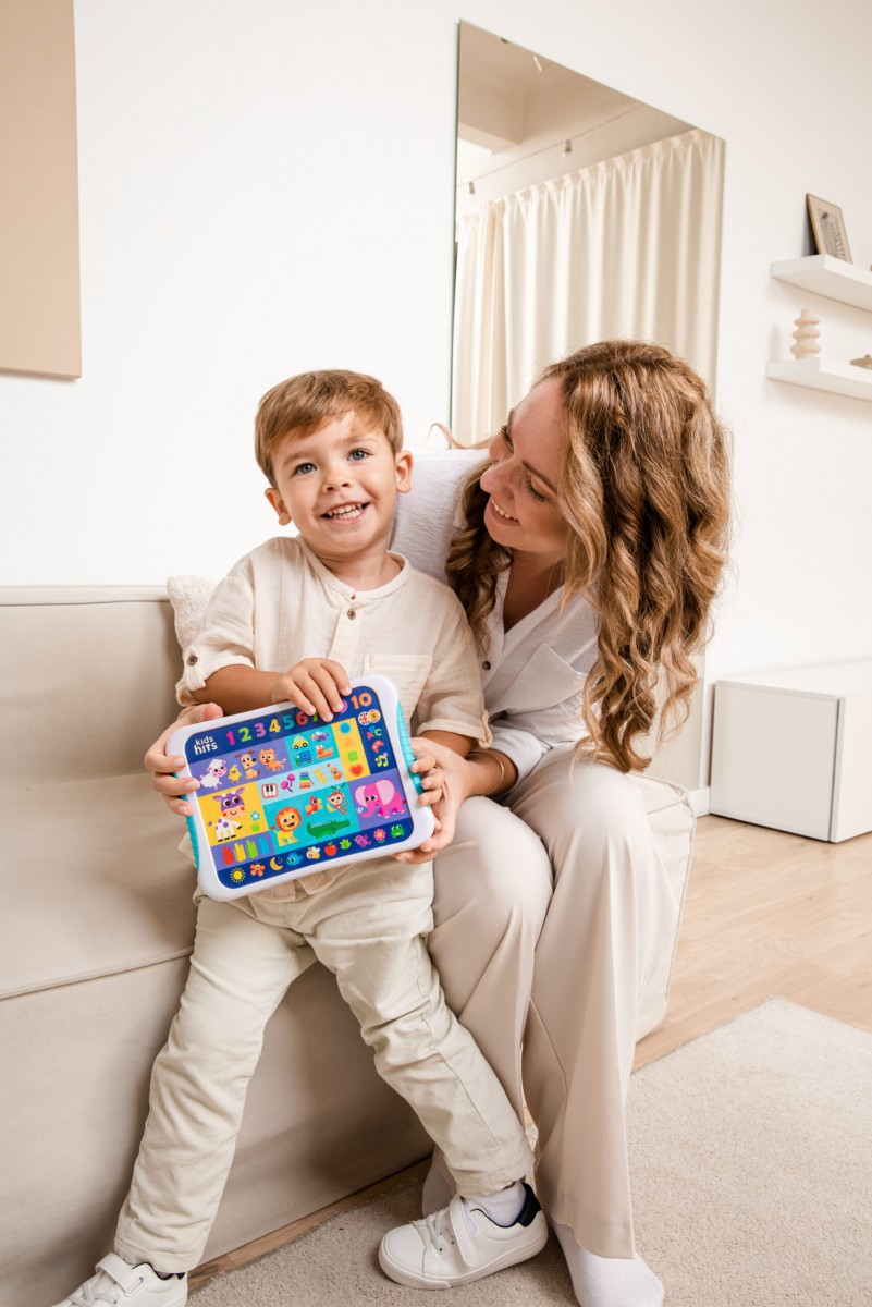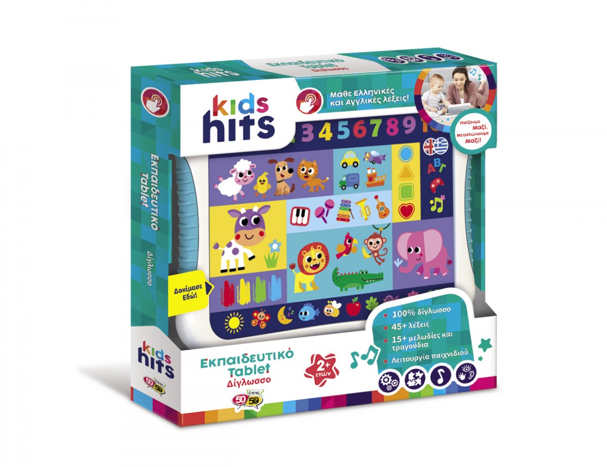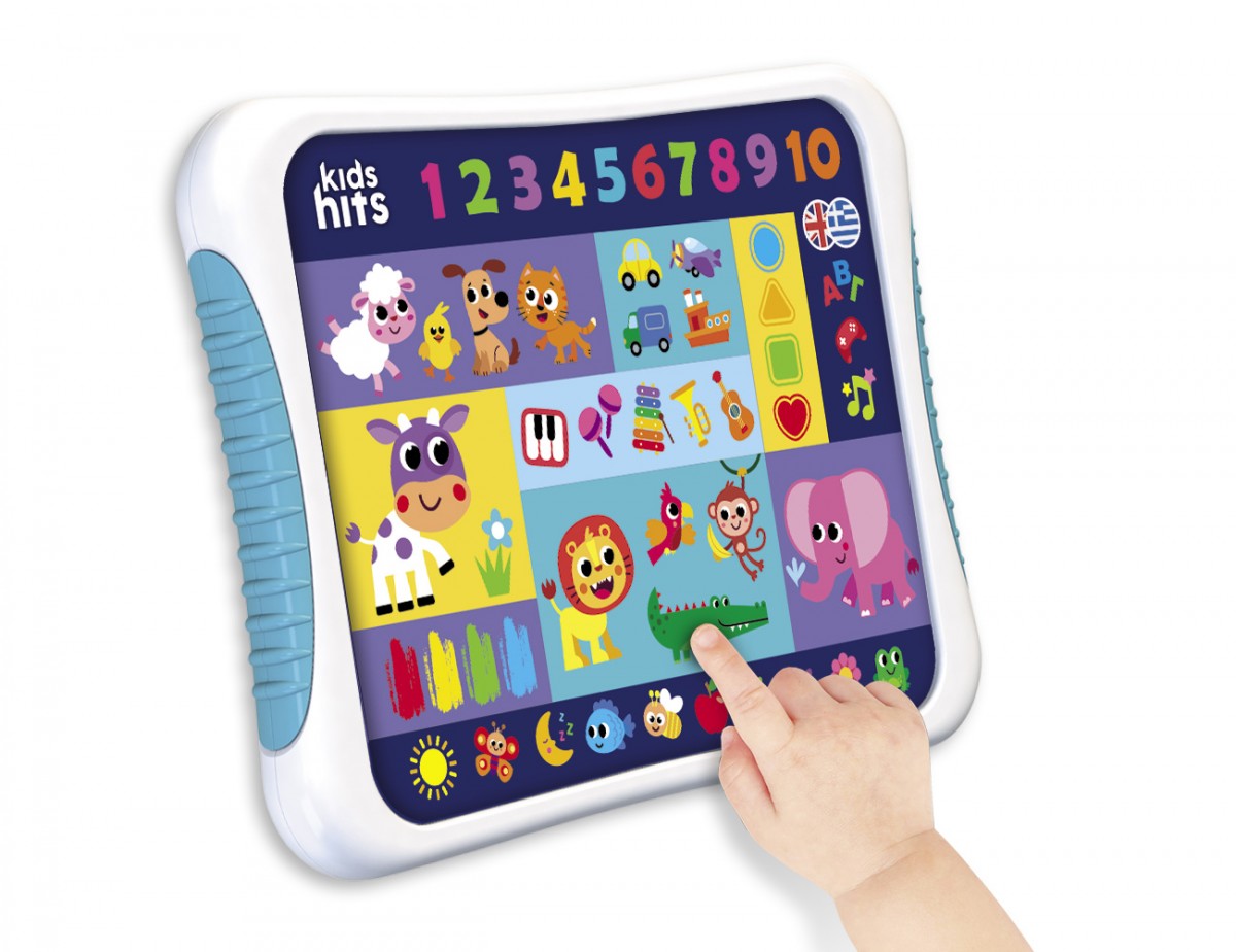 Η εκμάθηση των Ελληνικών και των Αγγλικών γίνεται τόσο διασκεδαστική με το Δίγλωσσο Εκπαιδευτικό Tablet! Το παιδί ακούει ήχους ζώων, μαθαίνει την αλφάβητο, τα σχήματα, τα χρώματα και τους αριθμούς στα Ελληνικά και τα Αγγλικά. Τα εκπαιδευτικά Eλληνικά και Αγγλικά τραγούδια, οι χαρούμενες μελωδίες και οι αστείοι ήχοι κάνουν το Δίγλωσσο Tablet ιδανικό για την ανάπτυξη της ακουστικής ικανότητας και των μουσικών δεξιοτήτων!