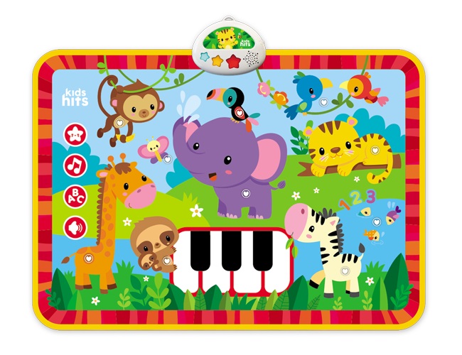 Το Μουσικό Χαλάκι Ζωολογικός Κήπος βοηθά το παιδί να ανακαλύψει τον κόσμο αναπτύσσοντας όλες τις αισθήσεις. Τα φωτεινά χρώματα, το μαλακό ύφασμα, οι ήχοι πραγματικού πιάνου και τα φωτάκια που ανάβουν στον ρυθμό της μουσικής, διασκεδάζουν το μωρό, ενώ παράλληλα του χαρίζουν τις πρώτες του γνώσεις.
