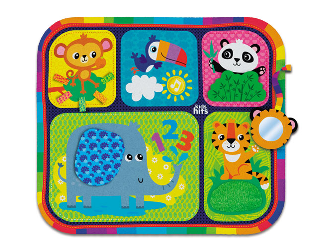 Το Χαλάκι Δραστηριοτήτων Ζωολογικός Κήπος θα εντυπωσιάσει κάθε παιδί με την χαρούμενη εικονογράφηση με ζωάκια και τους διασκεδαστικούς του ήχους. Λόγω της μαλακής του υφής και της αντιολισθητικής λαστιχένιας πίσω όψης, το χαλάκι προσφέρει μια ασφαλή επιφάνεια παιχνιδιού. Το παιδί μπορεί να παίζει ξαπλωμένο με την πλάτη, την δεξιά ή την αριστερή πλευρά, ακόμα και με την κοιλίτσα του. Με το Χαλάκι Δραστηριοτήτων Ζωολογικός Κήπος το παιδί αναπτύσσει την οπτική και τη γνωστική του ικανότητα, μαθαίνοντας να αναγνωρίζει χρώματα και σχήματα.