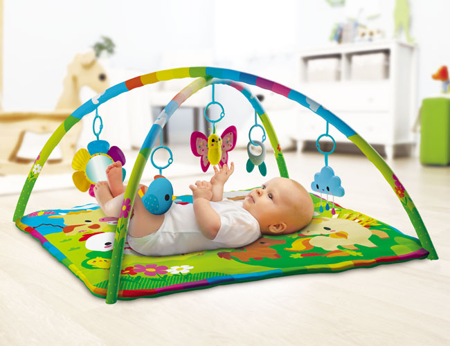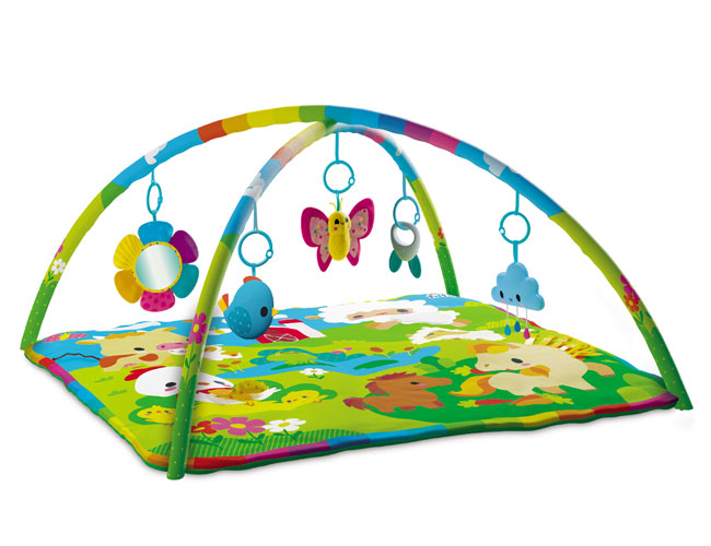Το Βρεφικό Γυμναστήριο Χαρούμενη Φάρμα είναι το ιδανικό παιχνίδι για κάθε παιδί! Το Γυμναστήριο αποτελείται από ύφασμα ευχάριστο στην αφή με ανάγλυφες λεπτομέρειες. Τα πέντε πολύχρωμα παιχνιδάκια που κρέμονται από τις αποσπώμενες αψίδες, προσφέρουν ατελείωτες ώρες διασκέδασης και εξασκούν τις λεπτές κινητικές δεξιότητες. Τα χαρούμενα χρώματα και η ποικιλία ήχων προάγουν την οπτική και ακουστική ικανότητα του παιδιού, δημιουργώντας ένα περιβάλλον διασκέδασης και ασφάλειας.