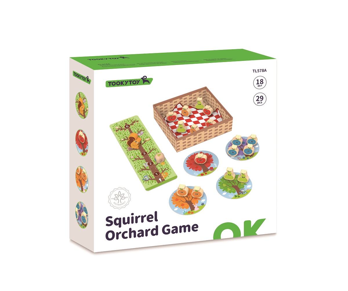 - Αν τύχει η επιλογή με όλα τα χρώματα, χάνετε τη σειρά σας. Αν ο παίκτης καταφέρει να μαζέψει πρώτος όλα τα φρούτα, τότε κερδίζει. Αν προλάβει ο σκίουρος να φτάσει πρώτος στον προορισμό του, τότε κερδίζει εκείνος. Αποτελείται από 29 τεμάχια και απευθύνεται σε παιδιά άνω των 18 μηνών.