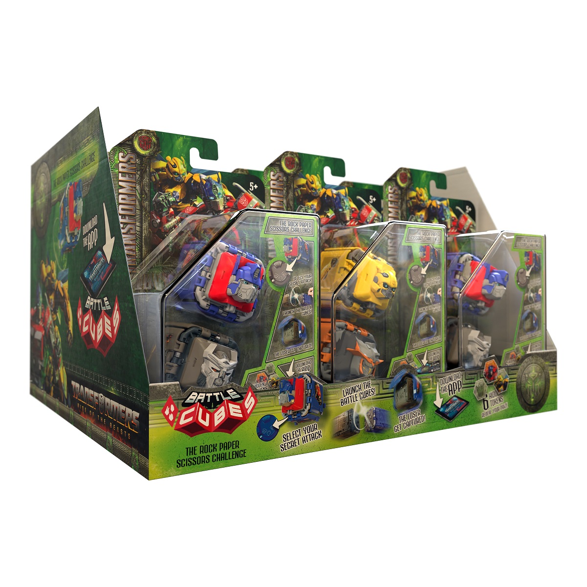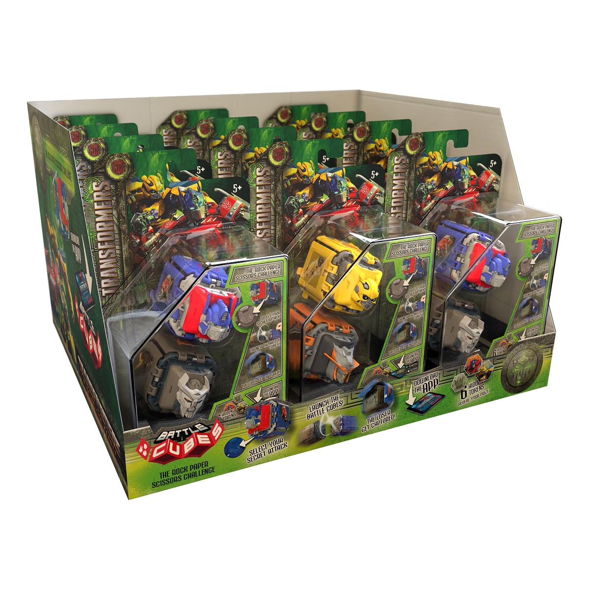 Ελευθερώστε τη δύναμη των Battle Cubes! Το κλασικό παιχνίδι μάχης σε συσκευασία τσέπης, εμπνευσμένο από το αγαπημένο παιχνίδι όλων των εποχών "πέτρα, ψαλίδι, χαρτί", έρχεται τώρα με νέα σχέδια από τους αγαπημένους ήρωες Transformers!