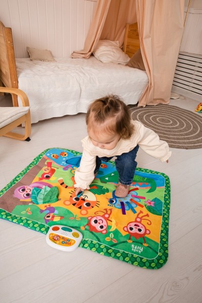 Το Μουσικό Χαλάκι Ζωάκια της Ζούγκλας θα ενθουσιάσει κάθε παιδί! Το ειδικό υλικό που είναι ευχάριστο στην αφή και η πολύχρωμη εικονογράφηση ενθαρρύνουν το παιδί να αναπτύξει τις οπτικές και κινητικές του δεξιότητες, καθώς το παρακινούν να μετακινηθεί για να εξερευνήσει κάθε ζωάκι της ζούγκλας. Οι χαρούμενες μελωδίες και οι φωνές ζώων προσφέρουν ατελείωτες ώρες δημιουργικής απασχόλησης και διασκέδασης. Το Μουσικό Χαλάκι Ζωάκια της Ζούγκλας περιλαμβάνει αποσπώμενο χειριστήριο, έτσι ώστε να είναι εύκολο στο καθάρισμα.