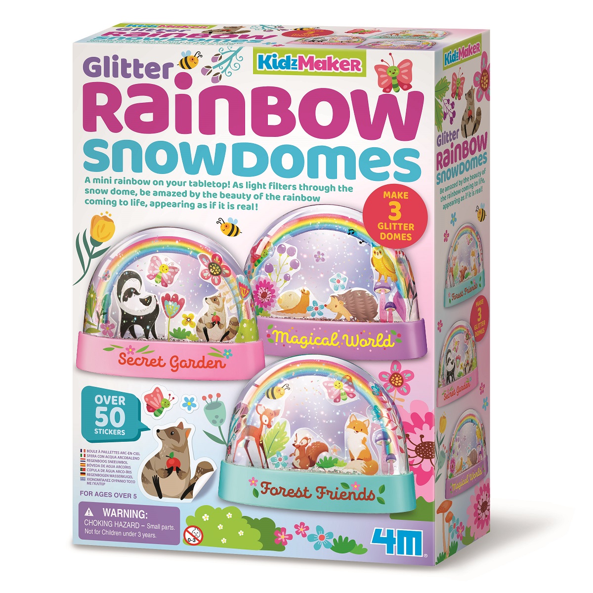 Διαλέξτε το ουράνιο τόξο που σας αρέσει, τοποθετήστε το στο σφαιρικό τμήμα και προσθέστε νερό για να δείτε το ουράνιο τόξο σας να επιπλέει. Με ένα σταγονόμετρο προσθέστε όσο νερό χρειάζεται και με μια οδοντογλυφίδα προσθέστε και το γκλίτερ, ανακατεύοντας ελαφρώς. Σφίξτε το λαστιχένιο πώμα και χρησιμοποιείστε τα αυτοκόλλητα για να διακοσμήσετε την χιονόμπαλά σας. Χρησιμεύει επίσης σαν μία ωραία κορνίζα για να βάλετε φωτογραφίες.