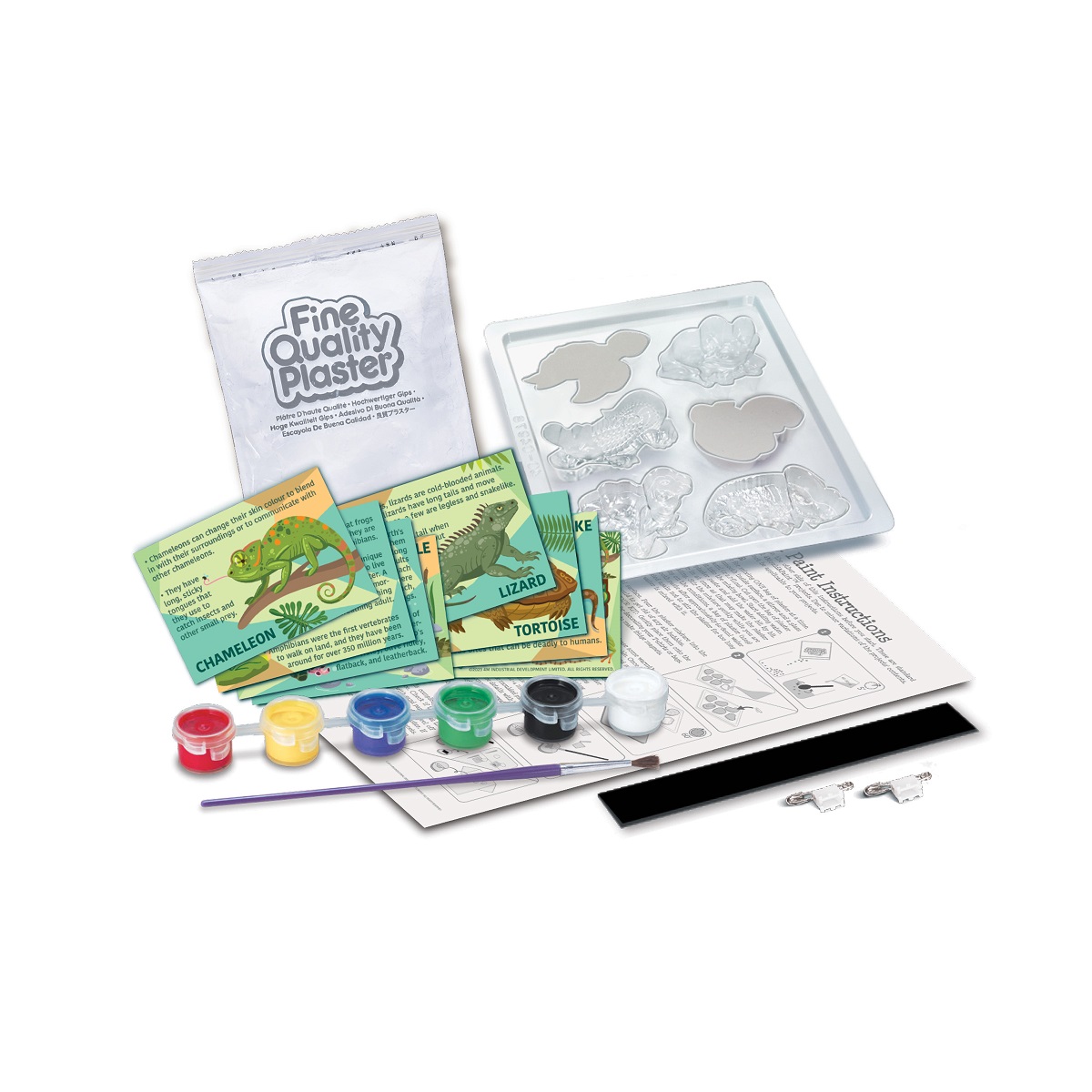 ΠΑΡΑΣΚΕΥΗ: Προετοίμασε τον γύψο ακολουθώντας τις οδηγίες και ρίξε το μείγμα στο καλούπι. Περίμενε λίγο μέχρι να σταθεροποιηθεί και έπειτα αφαίρεσέ τον και χρωμάτισε τα ερπετά και αμφίβια με τα χρώματα που περιλαμβάνονται. Άφησε τα να στεγνώσουν εντελώς. Έπειτα κόλλησε στην πίσω επίπεδη πλευρά τους μαγνήτες ή τις ειδικές καρφίτσες και δημιούργησε έτσι τους τέλειους μαγνήτες για το ψυγείο σου ή κονκάρδες για τα ρούχα και την τσάντα σου.