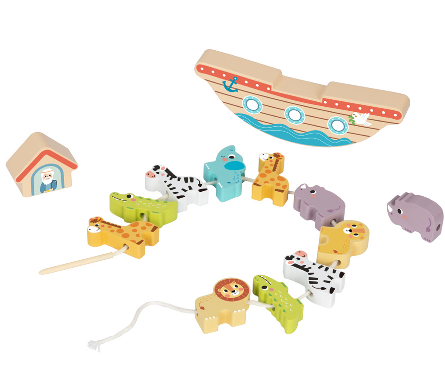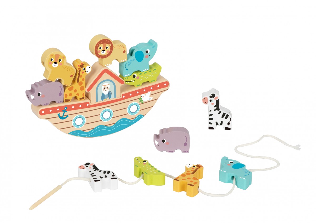 Στοίβαξε χαριτωμένα ζωάκια διαφόρων σχημάτων, όπως καμηλοπαρδάλεις, ελέφαντες, λιοντάρια και πολλά άλλα που καθιστούν το παιχνίδι μια κατάλληλη πρόκληση για παιδιά άνω των 3 ετών. Συνοδεύεται από συρόμενο παιχνίδι με ζωάκια.