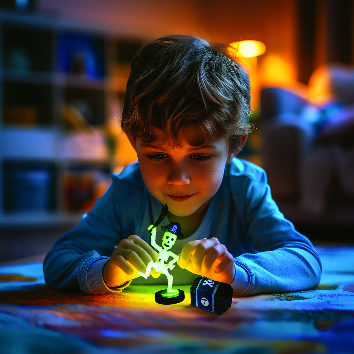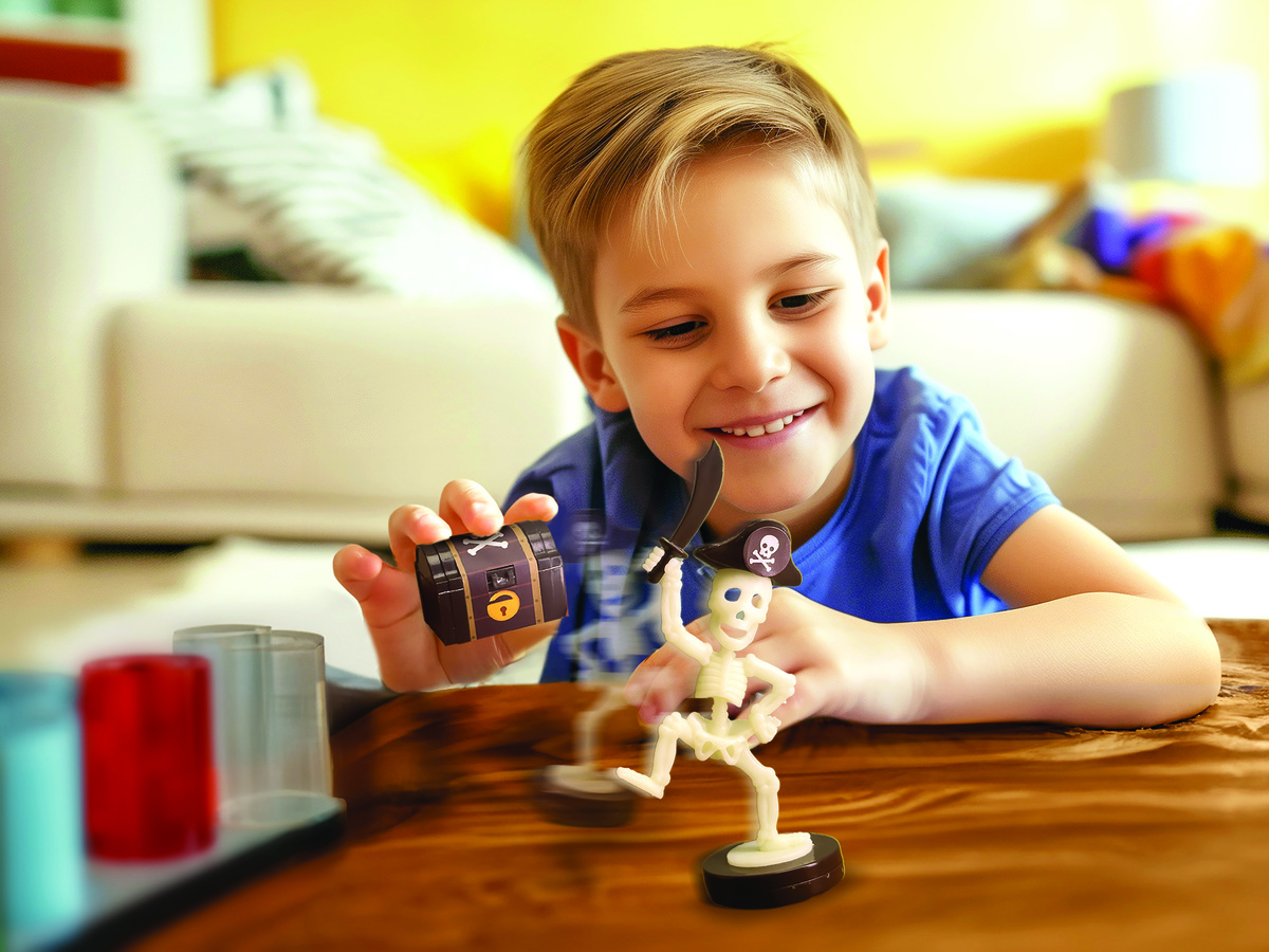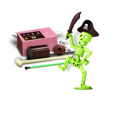 Ανακάλυψε τον φωσφορούχο σκελετό ενός πειρατή και δες τον να ζωντανεύει, να περιστρέφεται και να χορεύει όταν ανακαλύπτει το σεντούκι με τον θησαυρό. Ένα διασκεδαστικό επιστημονικό παιχνίδι!