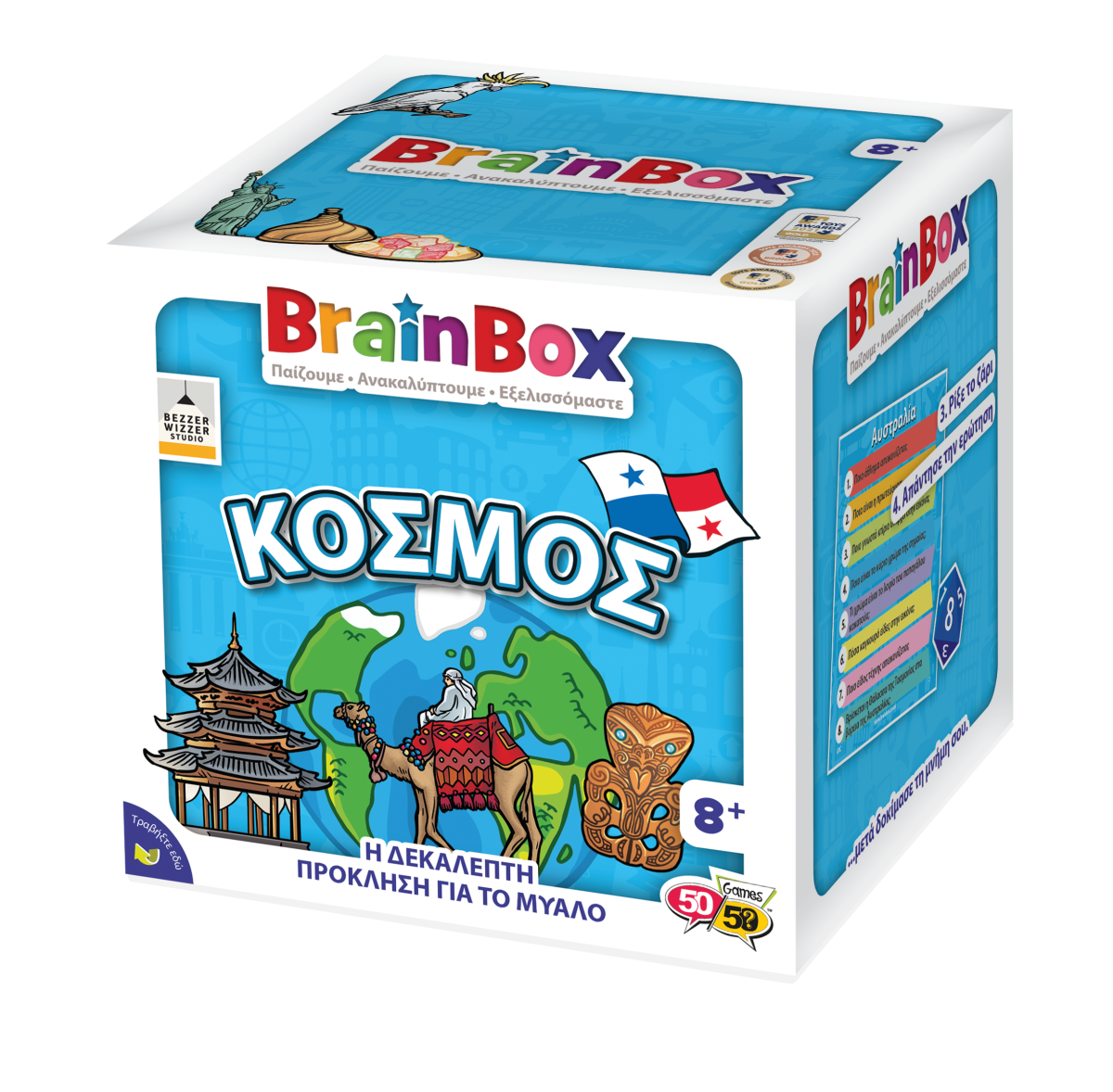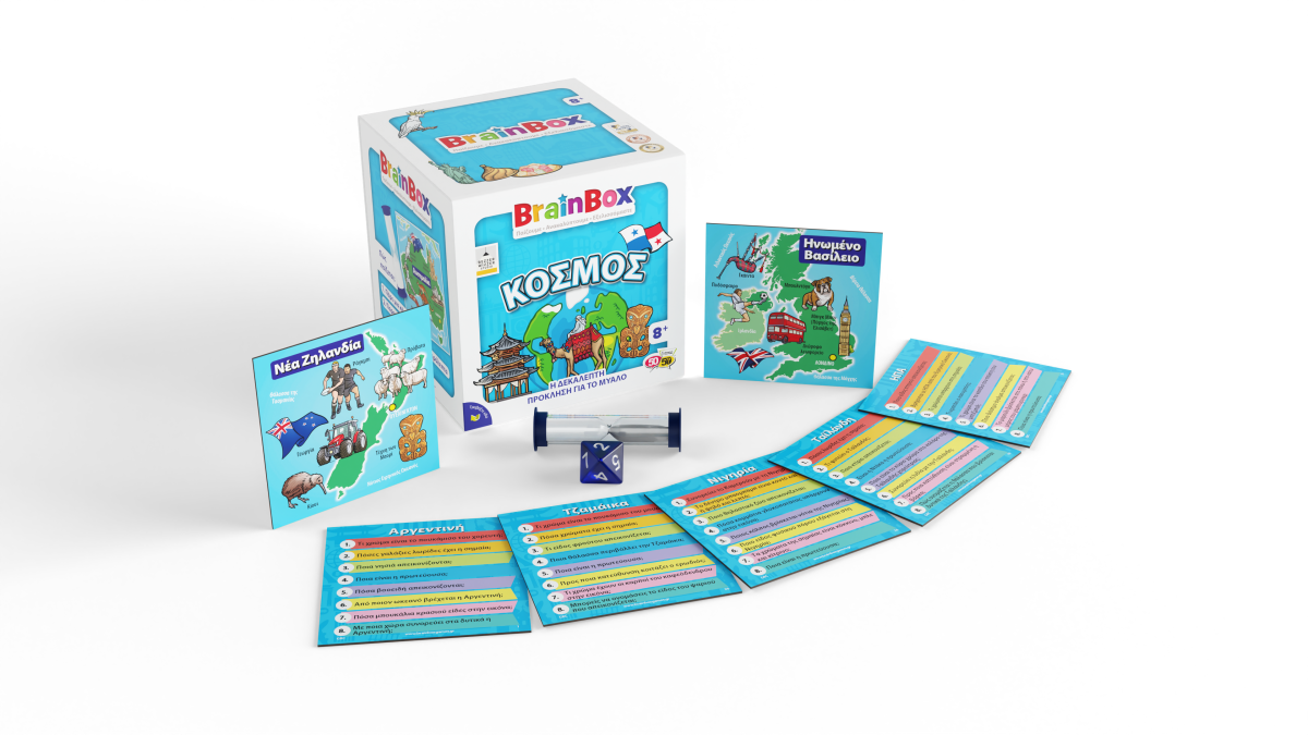 Εξερεύνησε όλες τις χώρες του κόσμου από το σπίτι σου! Διάλεξε μια κάρτα μέσα από το BrainBox. Αναποδογύρισε την κλεψύδρα και προσπάθησε να μάθεις απ' έξω την κάρτα σε 10 δευτερόλεπτα! Τώρα ρίξε το ζάρι και απάντησε στην αντίστοιχη ερώτηση. Αν απαντήσεις σωστά κρατάς την κάρτα, αν απαντήσεις λάθος βάζεις την κάρτα πάλι μέσα στο BrainBox.