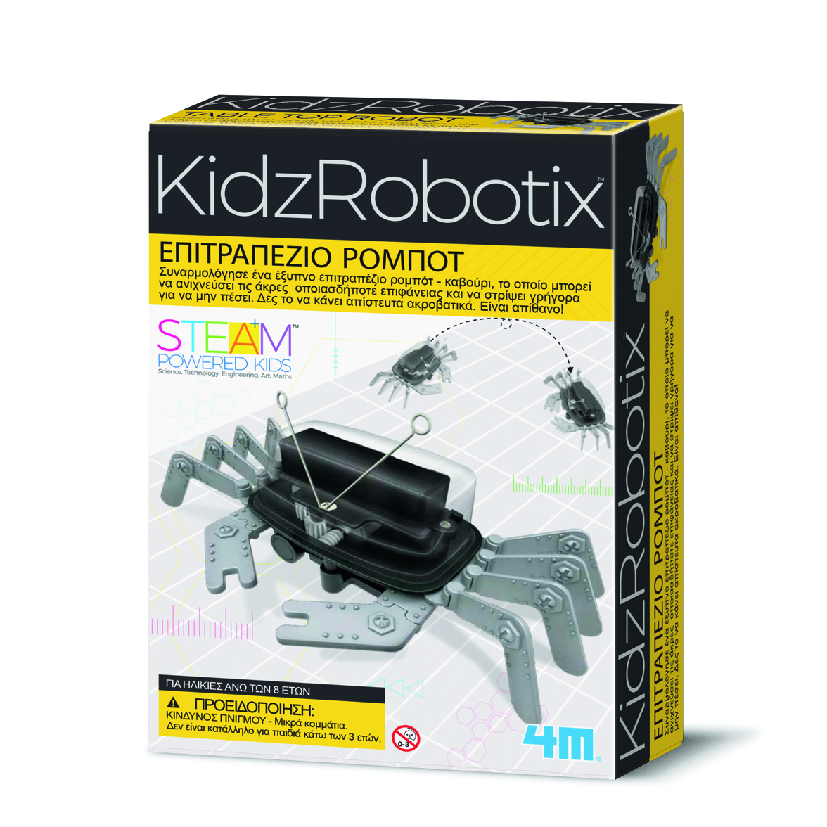 Φτιάξε ένα ρομποτικό καβούρι! Το ρομπότ ανιχνεύει τις άκρες οποιασδήποτε επιφάνειας για να στρίψει, αποφεύγοντας πτώση. Ενεργοποίησέ το και βάλτο στο τραπέζι για να το δεις να κάνει εντυπωσιακά ακροβατικά. Διάβασε τα ψυχαγωγικά στοιχεία που περιλαμβάνονται στις οδηγίες και μάθε ενδιαφέρουσες πληροφορίες για τα ρομπότ.
