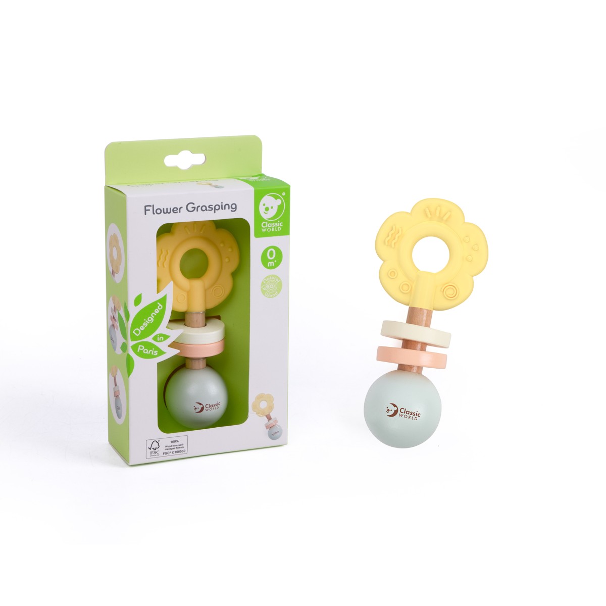 Αυτή η υπέροχη κουδουνίστρα σε σχήμα λουλουδιού έχει απαλούς χρωματισμούς ιδιαίτερα ελκυστικούς για τα βρέφη. Σχεδιασμένη για μικρά χεράκια, βοηθά στην ενίσχυση της αφής και των λεπτών κινητικών δεξιοτήτων, ενώ ταυτόχρονα προσφέρει αισθητηριακή απόλαυση και διασκέδαση.