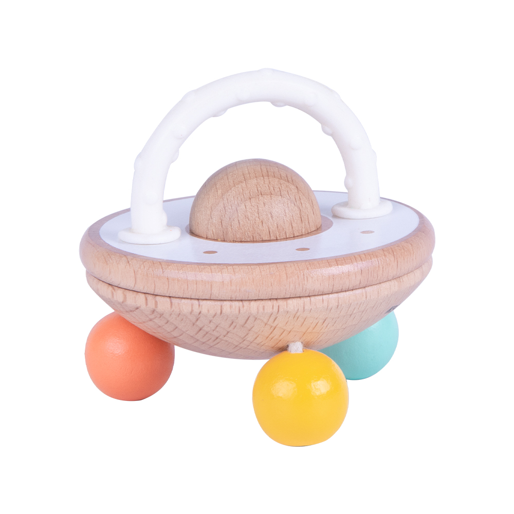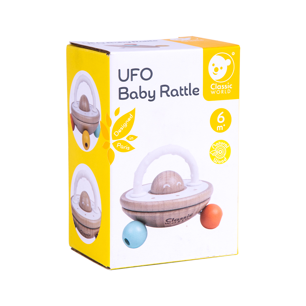 Όταν το μωρό κουνά αυτή την κουδουνίστρα, δημιουργείται ένας ήχος που θυμίζει ιπτάμενο δίσκο στον αέρα! Το μοναδικό της σχήμα και ο ήχος τραβούν την προσοχή του παιδιού, προσφέροντας ένα παιχνίδι που διεγείρει τόσο την ακοή όσο και την όραση. Ένα απλό, αλλά συναρπαστικό αισθητηριακό παιχνίδι, ιδανικό για τα πρώτα στάδια της ανάπτυξης του μικρού σας.