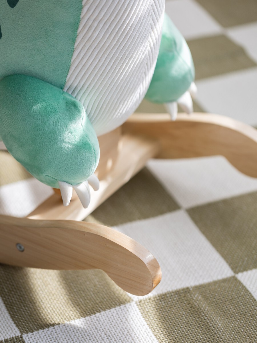 Αυτός ο χαριτωμένος ξύλινος κουνιστός δεινόσαυρος θα γίνει ο ιδανικός σύντροφος στις πρώτες βόλτες του μικρού σας μέσα στο σπίτι! Είναι κατασκευασμένος από βελούδινο ύφασμα, εξαιρετικά απαλό και άνετο στην αφή – ιδανικό για τα μικρά χεράκια των παιδιών! Ο σχεδιασμός του δεινόσαυρου είναι από τους αγαπημένους των παιδιών και υπόσχεται πολλές ώρες διασκέδασης με μια βόλτα! Παράλληλα, βοηθά στην ανάπτυξη της ισορροπίας και του συντονισμού καθώς τα παιδιά κρατούν τις λαβές και κουνιούνται μπρος-πίσω.