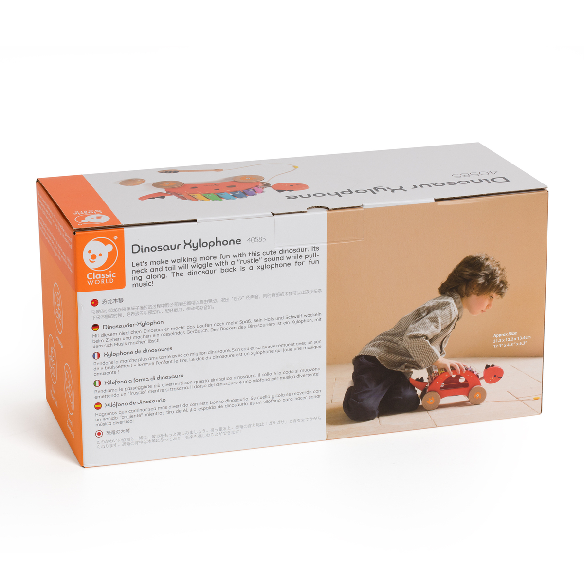 Ας κάνουμε το περπάτημα πιο διασκεδαστικό με αυτόν τον μικρό χαριτωμένο δεινόσαυρο! Καθώς το παιδί τον τραβά, ο λαιμός και η ουρά του κινούνται ελεύθερα με έναν ήχο «θροΐσματος» που τραβά την προσοχή. Στην πλάτη του διαθέτει και ένα ξυλόφωνο, προσθέτοντας μουσική και χαρά στο παιχνίδι! Ένα ιδανικό παιχνίδι που συνδυάζει την κίνηση, τη μουσική και την εξερεύνηση.