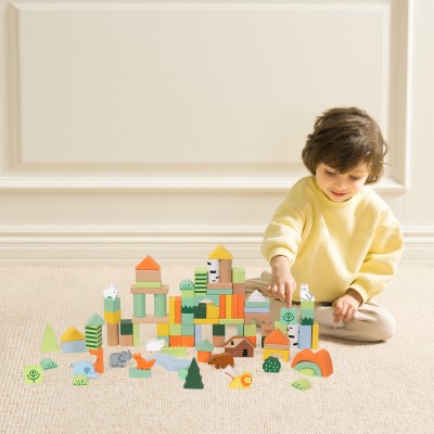 Αυτό το παιχνίδι με θέμα το δάσος είναι εμπνευσμένο από τη φύση και περιλαμβάνει τουβλάκια σε ποικιλία σχημάτων και χρωμάτων που αναπαριστούν μια ζωηρή σκηνή δάσους. Τα τουβλάκια είναι διακοσμημένα με χαριτωμένα ζωάκια, όπως λιοντάρια, καφέ αρκούδες και αλεπούδες, ενισχύοντας την επιθυμία των παιδιών για εξερεύνηση. Τα παιδιά μπορούν να δημιουργήσουν τον δικό τους φανταστικό κόσμο του δάσους, ενισχύοντας τη δημιουργικότητα, τη φαντασία και τον συντονισμό χεριού-ματιού μέσα από το δημιουργικό παιχνίδι.