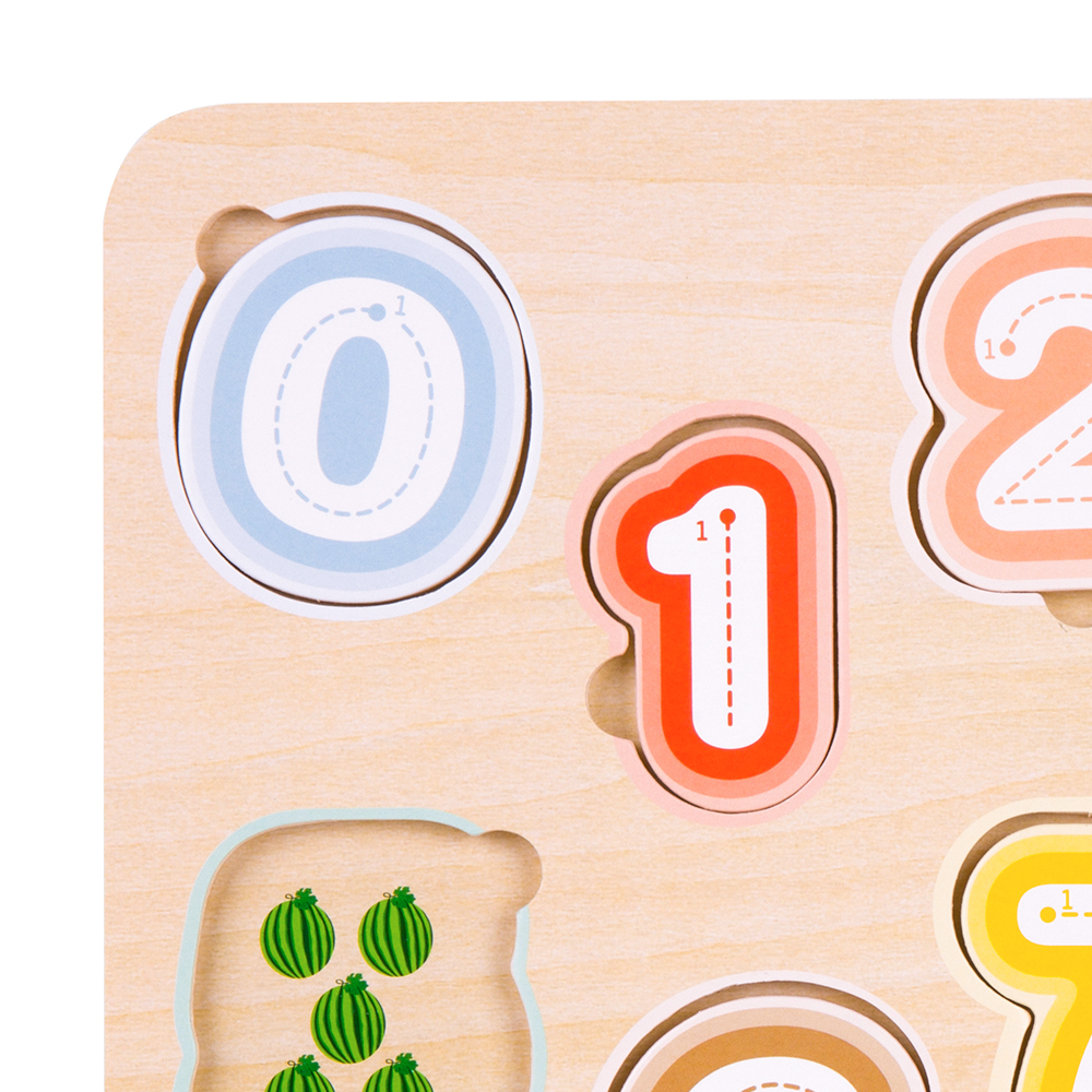 Εκπαιδευτικό και διασκεδαστικό, το χαριτωμένο αυτό ξύλινο παζλ βοηθά το παιδί σας να αναγνωρίζει τους αριθμούς και να μετράει. Τα φρουτάκια πάνω στα κομμάτια του παζλ ενθαρρύνουν την ανακάλυψη και την ανάπτυξη δεξιοτήτων επίλυσης προβλημάτων κάνοντας πιο ευχάριστο το παιχνίδι.