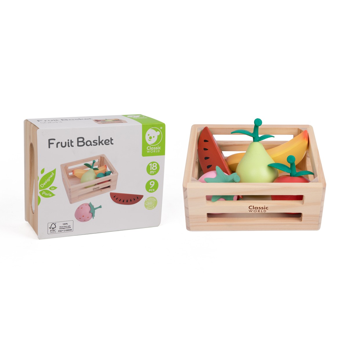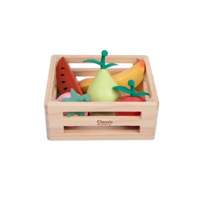 Αυτό το γοητευτικό ξύλινο παιχνίδι περιλαμβάνει ένα καλάθι με πολύχρωμα φρούτα, όπως αχλάδι, φέτα καρπουζιού, μπανάνα και φράουλα. Σχεδιασμένο με αγάπη, είναι τέλειο για τους μικρούς μας φίλους που θέλουν να εξερευνήσουν τη σωστή διατροφή με διασκεδαστικό τρόπο.