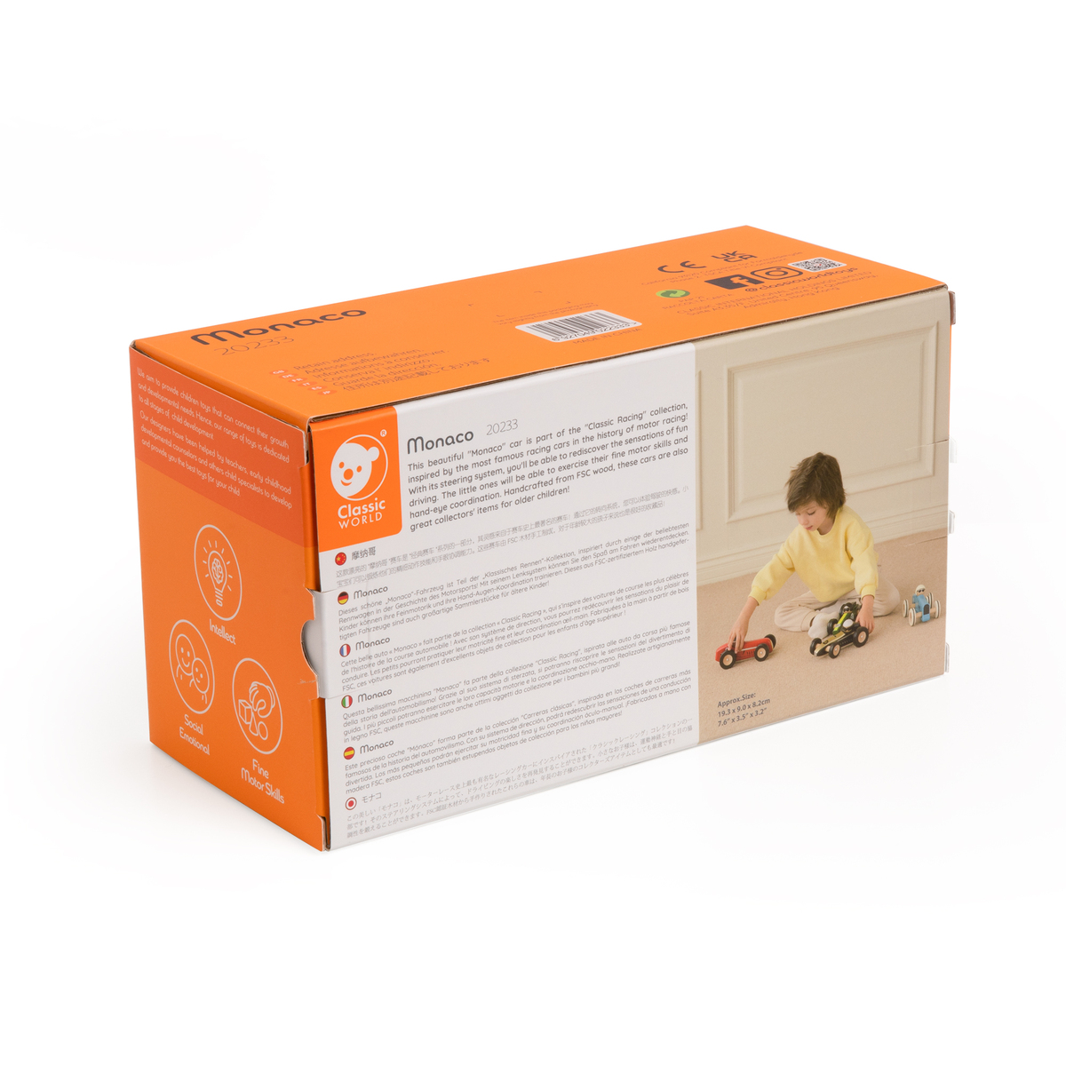 Αυτό το πανέμορφο αυτοκίνητο "Monaco" ανήκει στη συλλογή "Classic Racing", εμπνευσμένη από τα πιο διάσημα αυτοκίνητα στην ιστορία των αγώνων ταχύτητας! Χάρη στο σύστημα διεύθυνσης, τα παιδιά θα βιώσουν την απόλαυση της οδήγησης με διασκεδαστικό τρόπο. Οι μικροί οδηγοί θα αναπτύξουν τις λεπτές κινητικές τους δεξιότητες και τον οπτικοκινητικό συντονισμό. Το όχημα είναι χειροποίητο και φέρει την ένδειξη από ξύλο FSC, ενώ αποτελεί επίσης ένα εξαιρετικό συλλεκτικό κομμάτι για μεγαλύτερα παιδιά ή λάτρεις των κλασικών αυτοκινήτων.